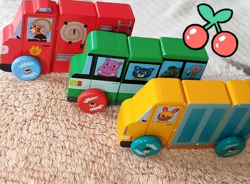 🍒 Très bon état 3 véhicules magnétiques en bois à construire