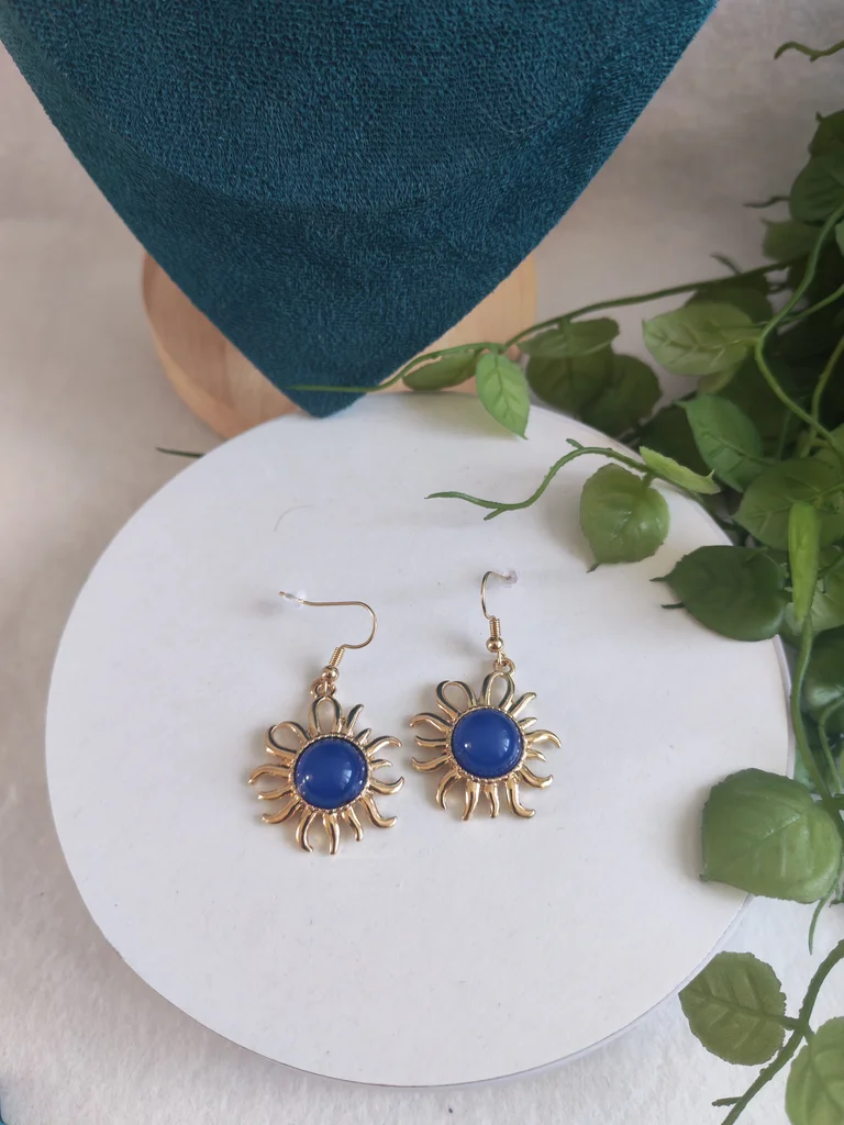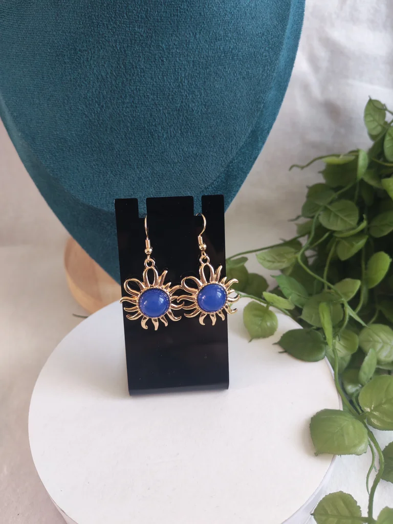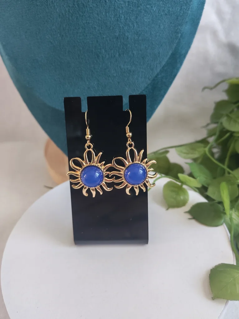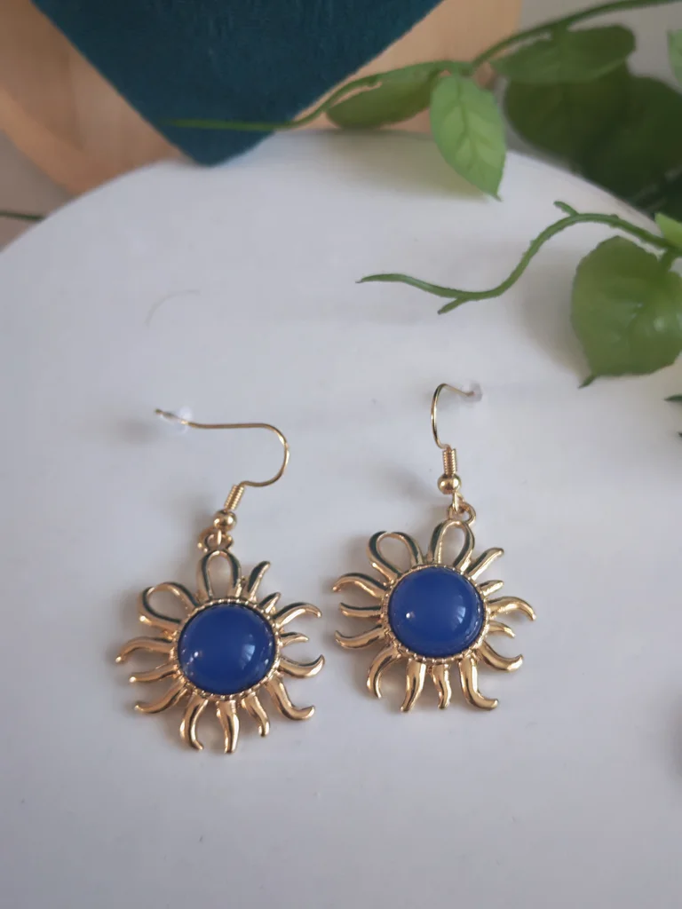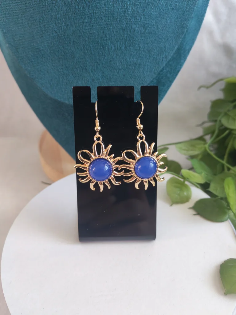 Boucles d'oreilles femme couleur dore et bleu Neuves jamais porté Envoi rapide et soigné Une petite attention dans chaque commande
