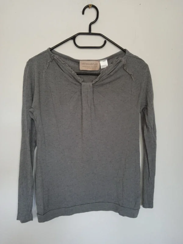 Tee shirt gris manches longues jolie encolure original, taille 36 marque Vanessa bruno édition limité la redoute année 2011/2012 très bon état #teeshirtgris #petithautgris #teeshirt36 #haut36 #teeshirtmancheslongues36 #vanessabruno #teeshirtlaredoute #editionlimite
