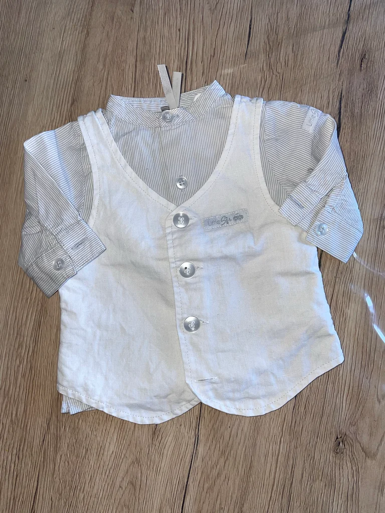 Je vends cette chemise boléro intégrée de la marque Orchestra, idéale pour bébé de 1 mois / 54 cm. - Type de produit : Chemise boléro intégrée - Taille : 1 mois / 54 cm - Marque : Orchestra - Couleur : Blanc et gris rayé N'hésitez pas à me contacter pour plus d'informations.
