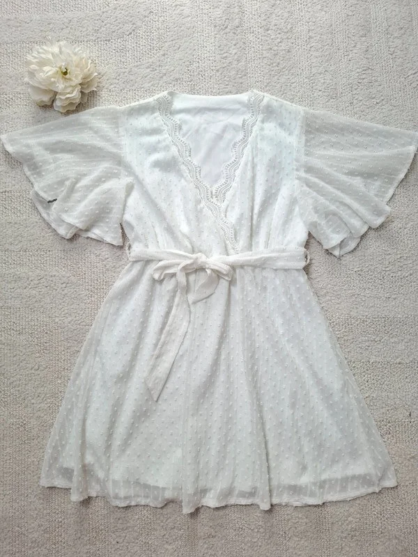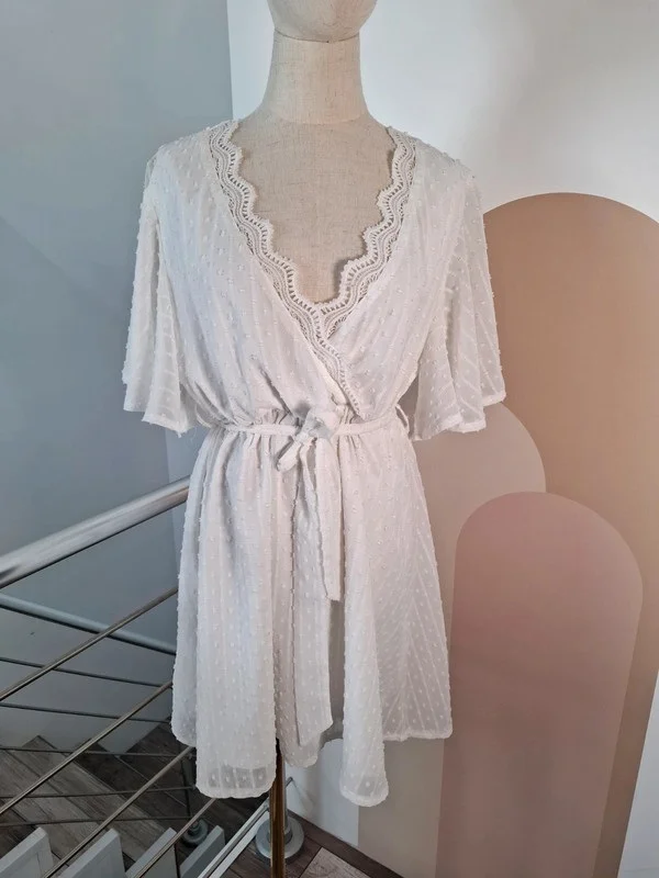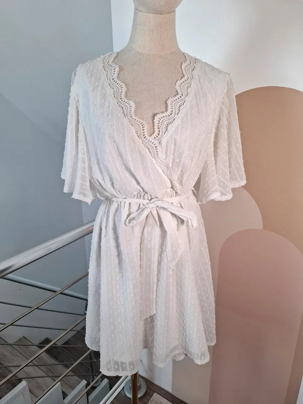 - Très jolie petite robe en plumetis blanc - Décolleté agrémenté d'une dentelle - Taille 40 perso rangé dans bac 2