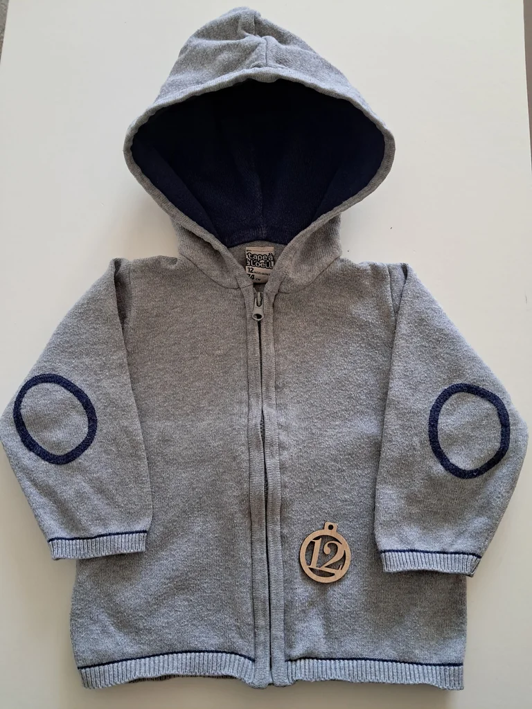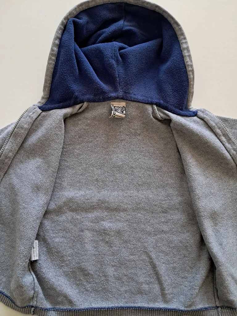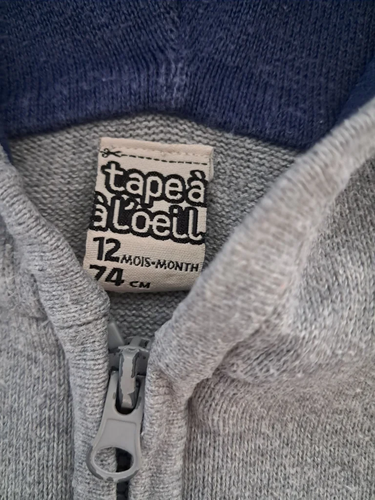 Très bonne état général, seul la couleur de l'attache et un peu effacé. Taille 12mois 74cm Marque Tape à l'œil Couleur gris/marine