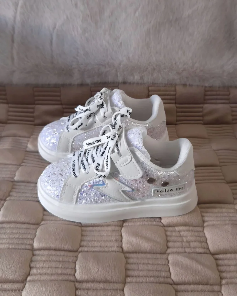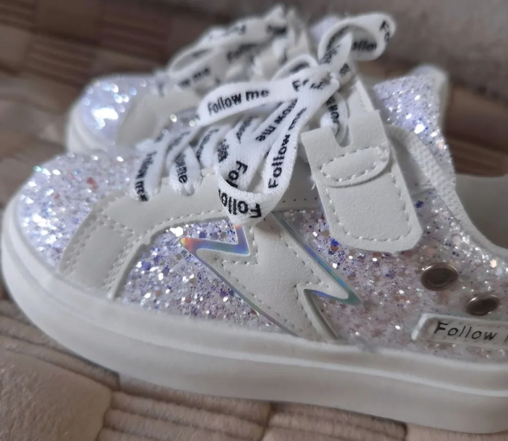 Baskets taille 26 Pailletées argentées Neuves Scratch + lacet
