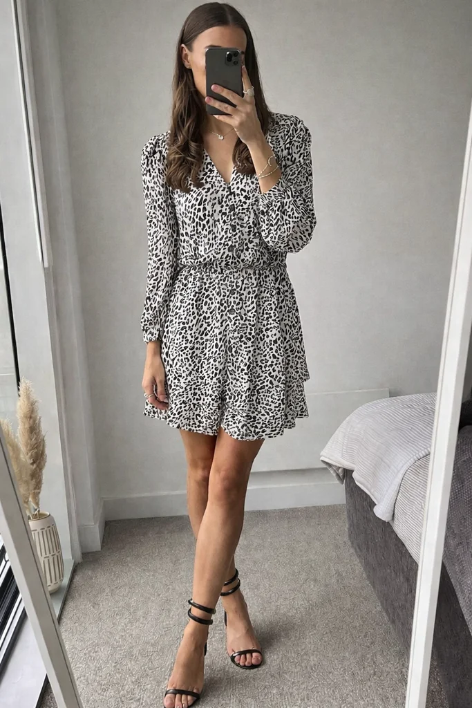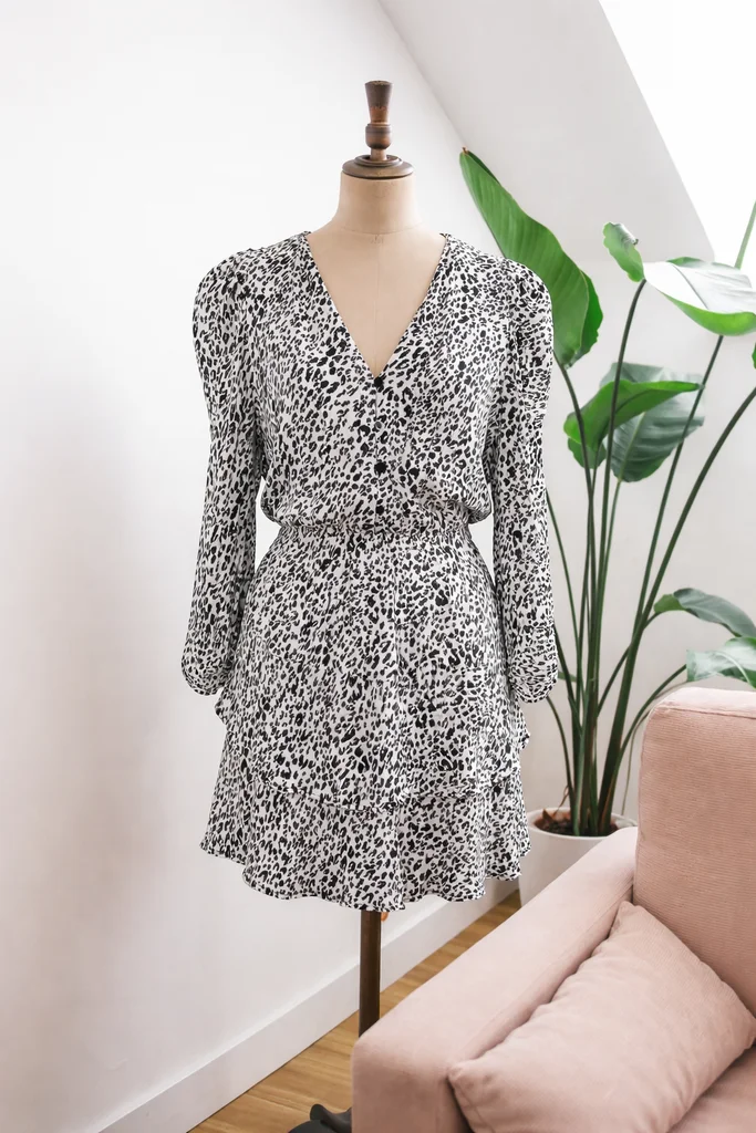 Superbe robe en taille XS, tendance et ultra féminine avec son imprimé léopard revisité noir et blanc 🤍🖤 🐆 Motif léopard chic et intemporel ✨ Décolleté en V avec boutons sur le devant 👗 Taille marquée pour sublimer la silhouette 🌿 Jupe à volants pour un effet fluide et féminin 💃 Manches longues légèrement bouffantes 👌 Très bon état 📦 Envoi rapide et soigné 💬 N’hésite pas à me contacter pour plus d’infos ! 💖 Une pièce tendance facile à porter #zara #robeleopard #looktendance #oplafrance #fashion #style #outfit #animalprint #chic #vetementfemme #printemps #automne