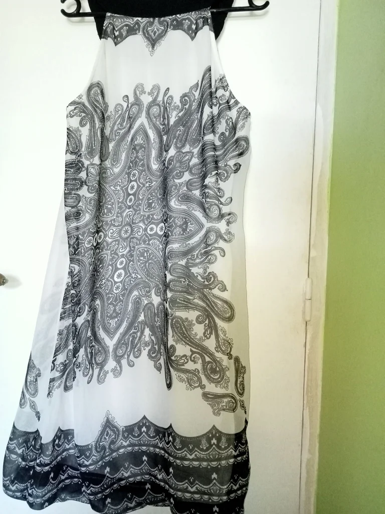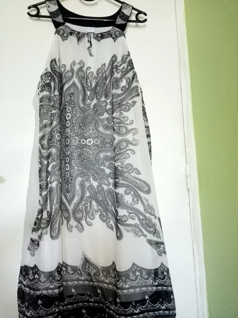 Voile imprimé extérieur, doublure intérieure. Bretelles avec perles L/XL Longueur totale : 100cm