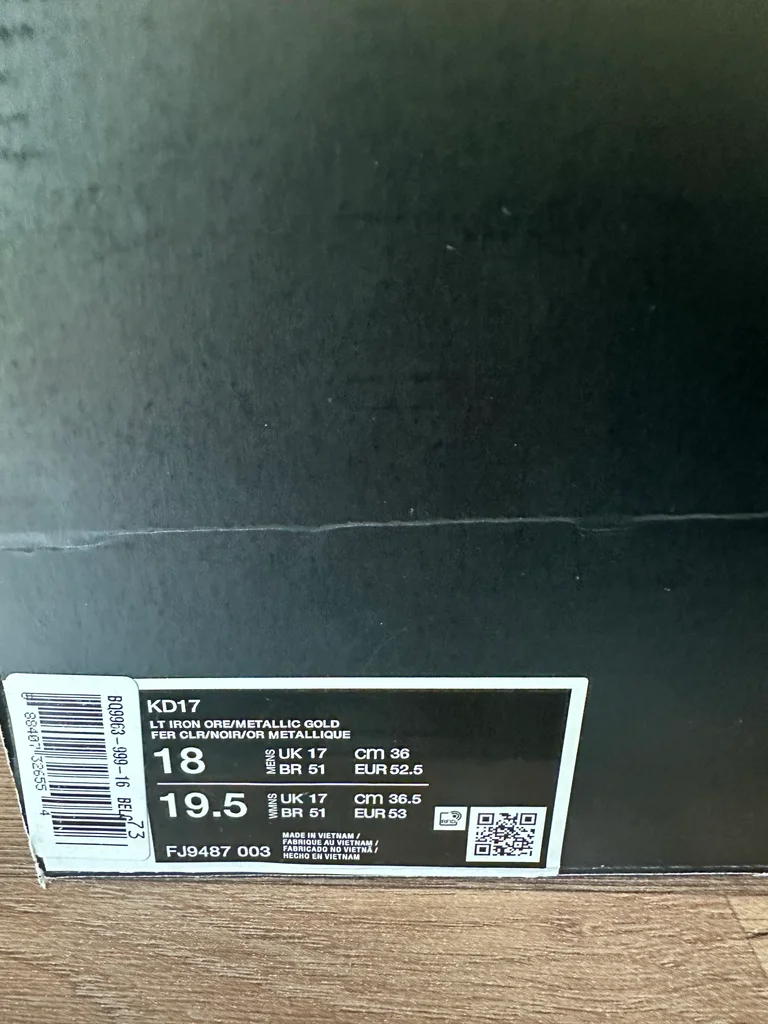 Chaussure Nike Kevin Durant KD17 Couleur : Fer CLR / Noir Or métallique Taille Eur 52.5 Taille Us 18 Taille Uk 17 Boîte sans couvercle #nike #kd17 #kevindurant #sport #sneaker #basket #basketball