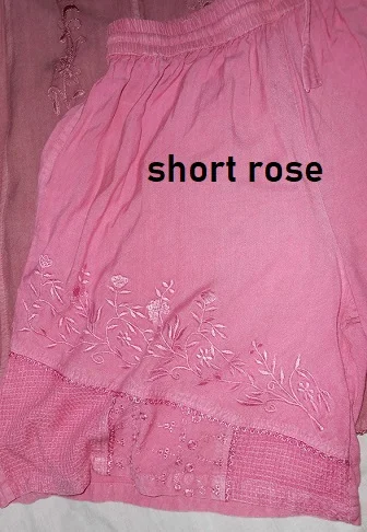 short - jupe , taille élastique , pour taille 38-40, avec lien de serrage neuf, lavé , trop serré pour moi le tout de taille élastique montre des trous et usures dedans alors que le short n a jamais été porté, juste lavé
