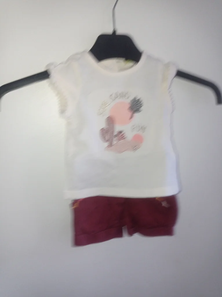 ✨ Ensemble Bébé Fille 3 mois - Tape à l'Oeil - Top Fleuri & Short à Bretelles ✨ Description : Coucou les mamans ! 👋 Je vends cet adorable ensemble 2 pièces de la marque Tape à l'Oeil (TAO) pour petite fille. Idéal pour un look craquant et confortable ! 🌸 🌿 Détails de l'ensemble : Top : Un petit haut à fleurs dans les tons bordeaux et crème. Manches légèrement bouffantes et bas élastiqué (effet smocké) pour plus de style. 🍒 Short : Un joli short uni couleur bordeaux avec des bretelles croisées. Très pratique et super mignon porté ! 🎀 ✨ Infos complémentaires : Marque : Tape à l'Oeil (TAO) 🏷️ Taille : 3 mois (62 cm) 📏 État : Très bon état, porté avec soin. Pas de taches ni de trous. ✅ Parfait pour une cérémonie ou juste pour être la plus belle cet été ! ☀️ 📦 Envoi rapide via Mondial Relay, Relais Colis ou Shop2Shop. 🧼 Vêtement lavé avec une lessive douce pour bébé. N'hésitez pas à faire un tour dans mon dressing pour créer un lot et réduire les frais de port ! 👚👶 Hashtags : #en [Description tronquée]