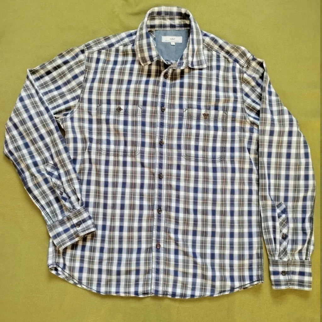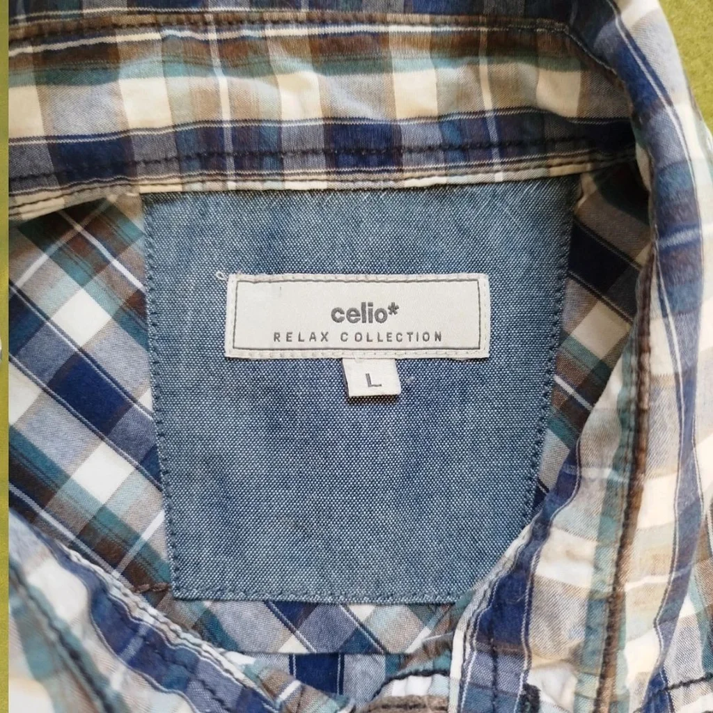 Chemise à carreaux blanche, bleue et marron. Celio, relax collection, taille L, tbe. G238