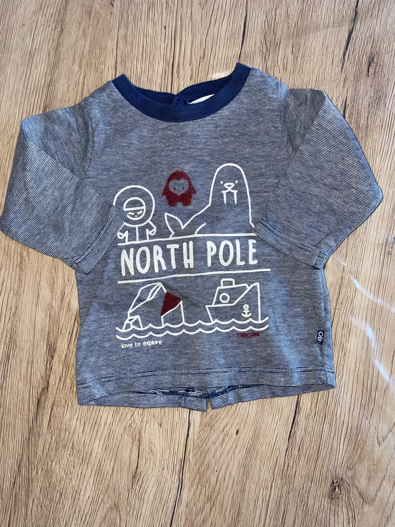 Je vends ce t-shirt Obaibi pour bébé de 1 mois / 53 cm. Type de produit : T-shirt Taille : 1 mois / 53 cm Marque : Obaibi Couleur : Blanc et bleu marine Caractéristiques : Motif imprimé "North Pole" N'hésitez pas à me contacter pour plus d'informations.