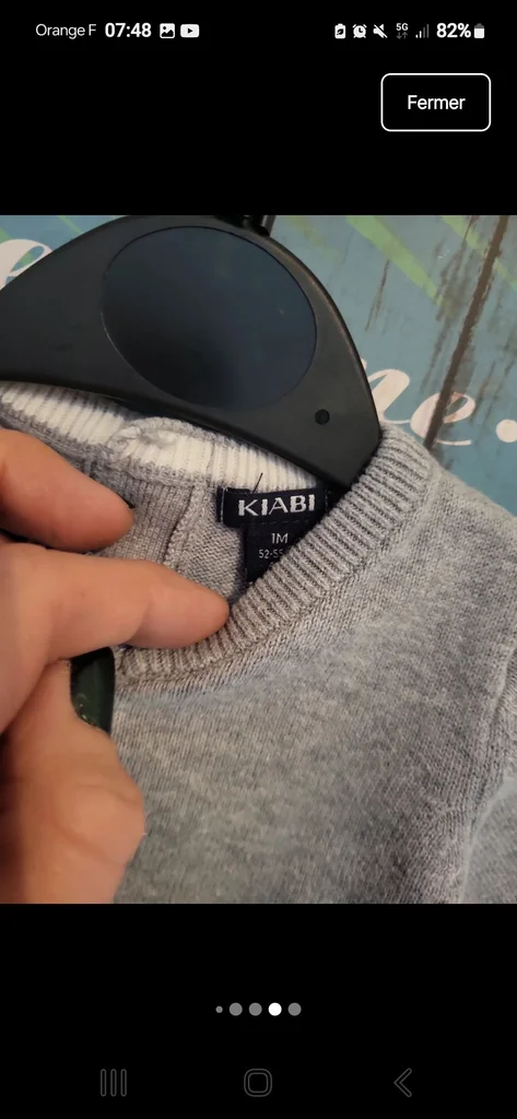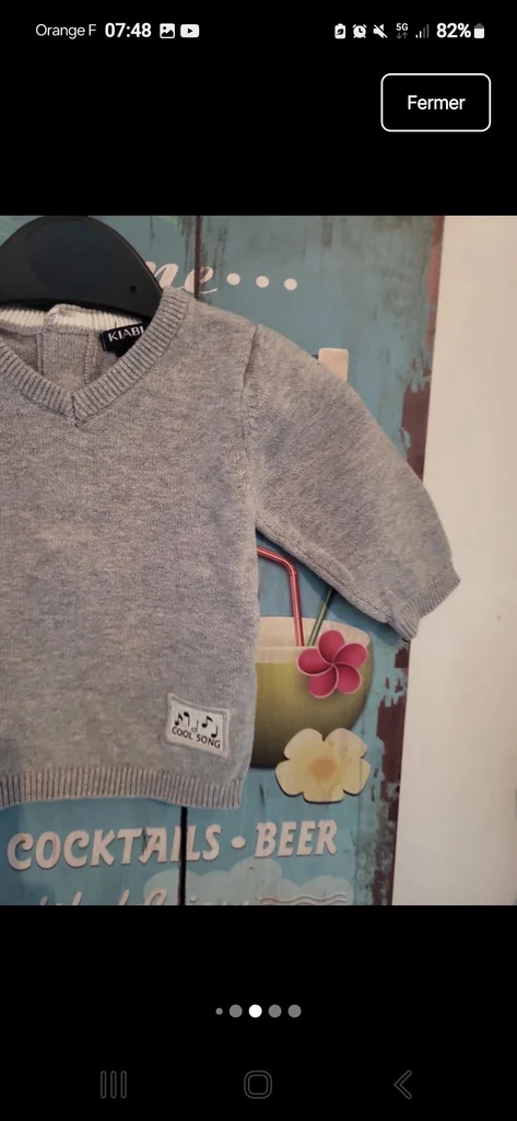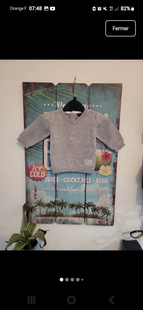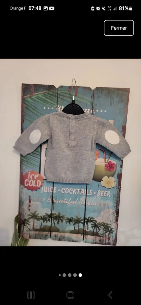 Pull gris col V 1 mois à coudieres blanches Très bon état Kiabi