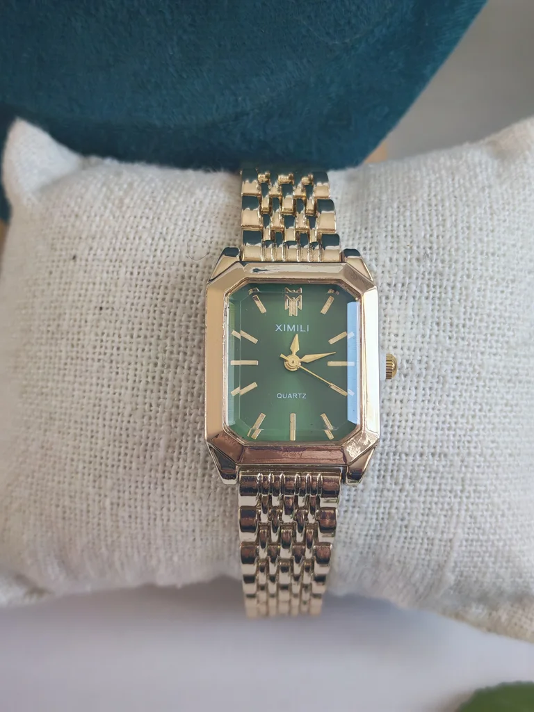 Montre femme quartz couleur dore et verte Neuve jamais porté Envoi rapide et soigné Une petite attention dans chaque commande