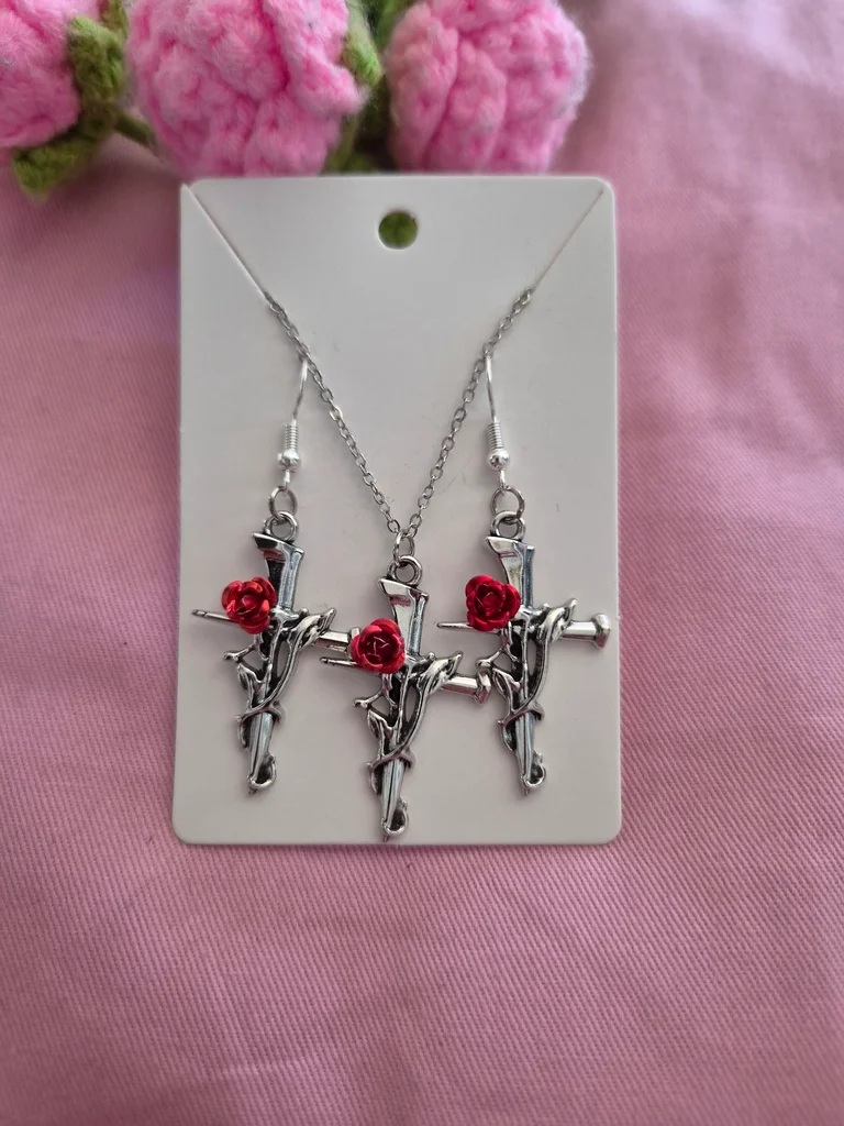 Superbe ensemble bijoux croix argentée Acier inoxydable Bijoux pret a offrir🦋 Plusieurs bijou en dressing 😊
