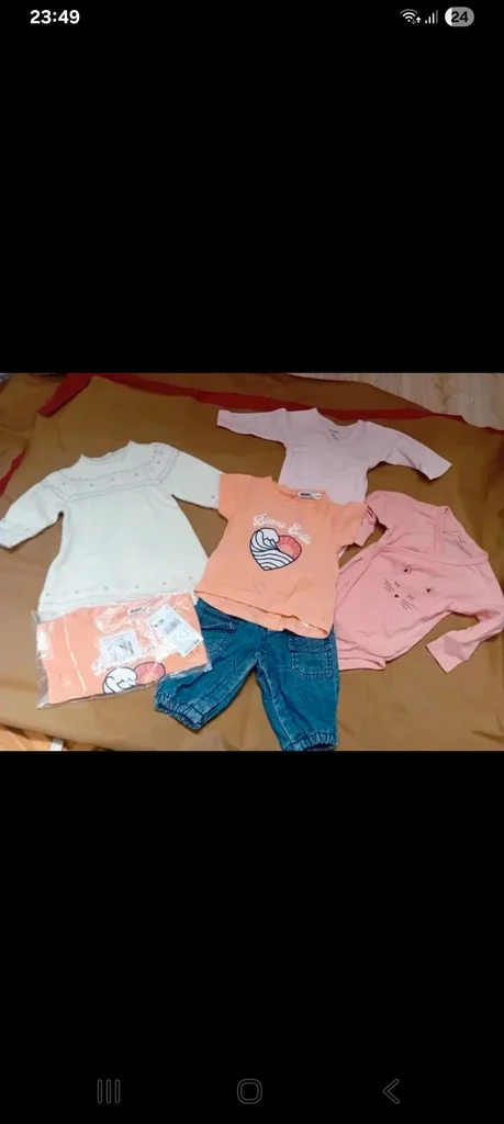 1 robe en acrylique 1 Tee-shirt neuf gemo 1 Tee-shirt gemo 1 jeans ( avec boutons pressions) 2 bodies En bon état #faufau2021vetementfille3mois