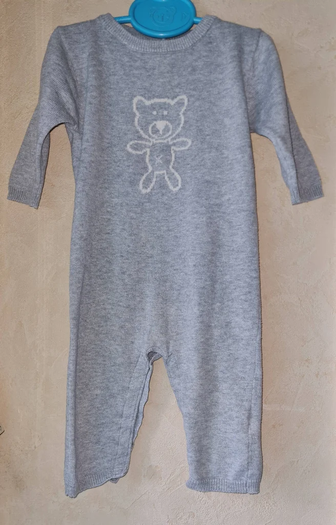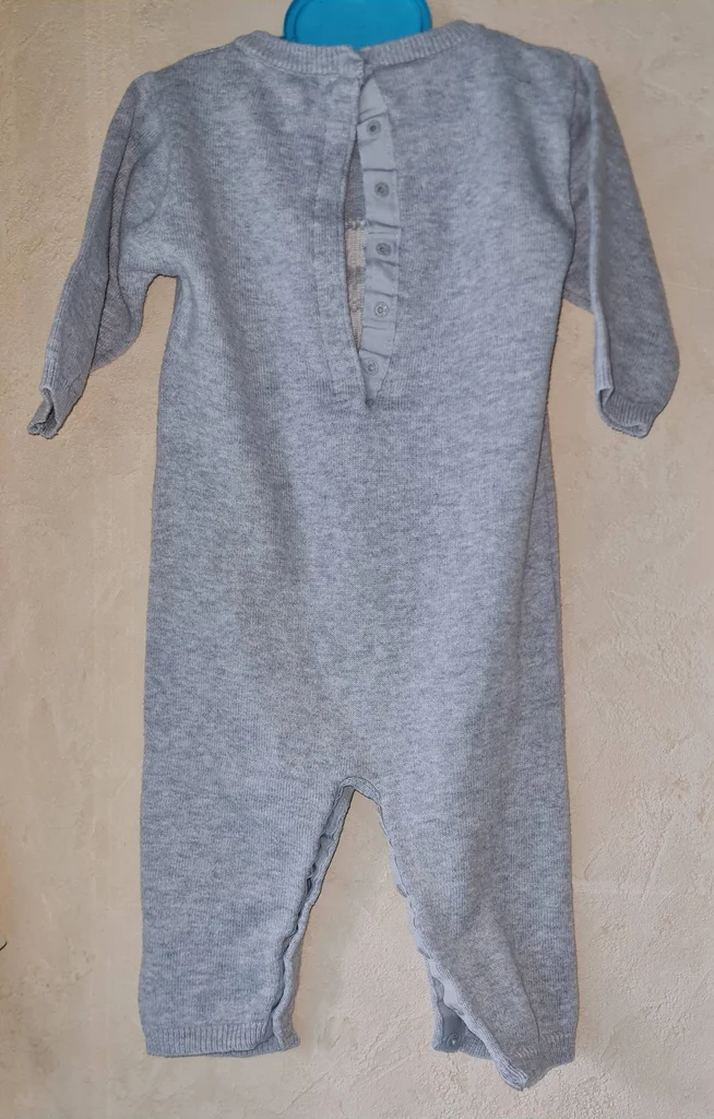 KITCHOUN combi gris clair aspect laine fine pressions dos et entre-jambes longueur 57cm #lesplacardsenfoliebébégarçon #lesplacardsenfoliebébéfille #3mois ref1