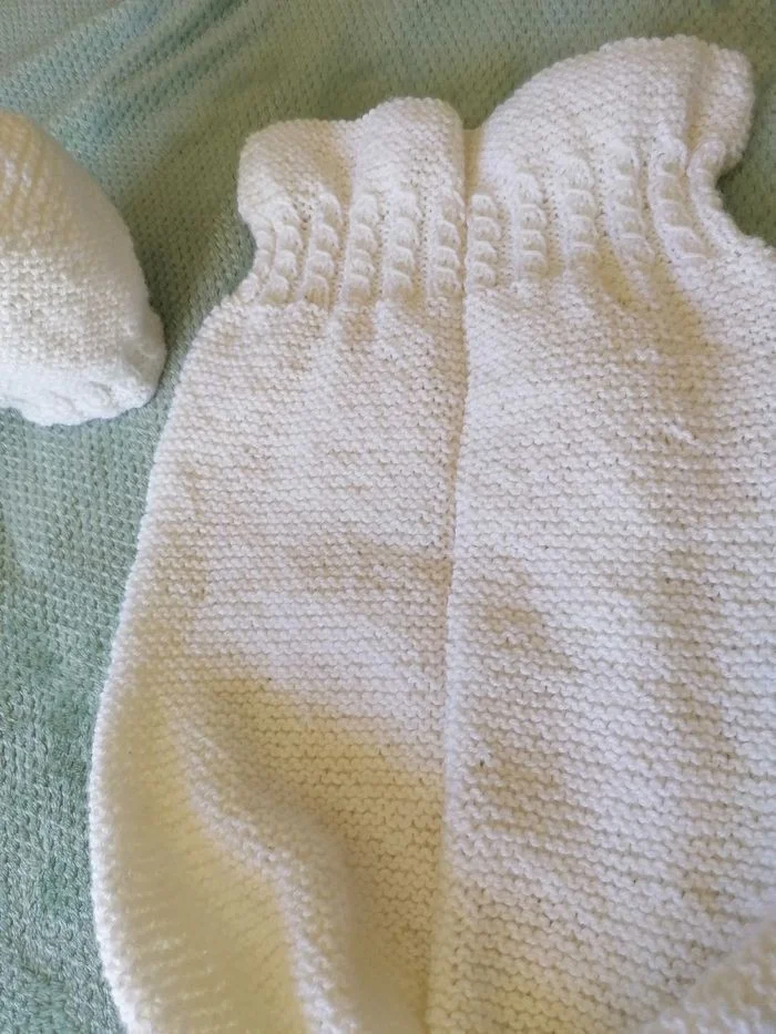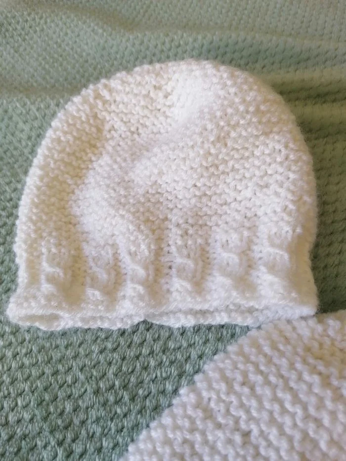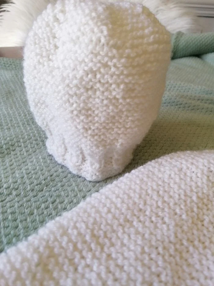 Cocon de naissance ou Emmaillotage tricoté main blanc