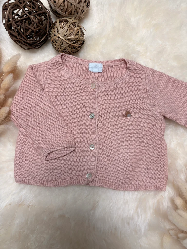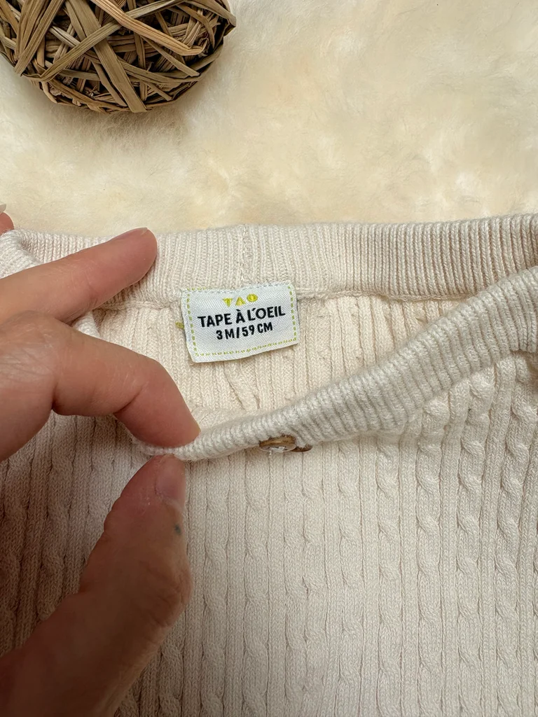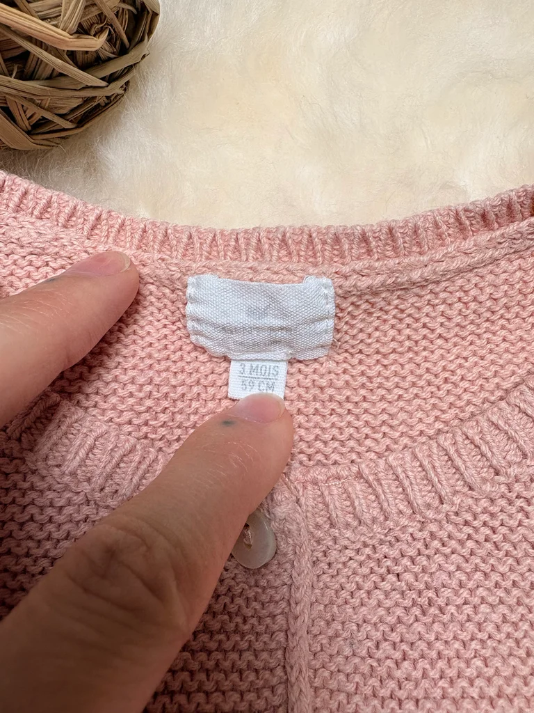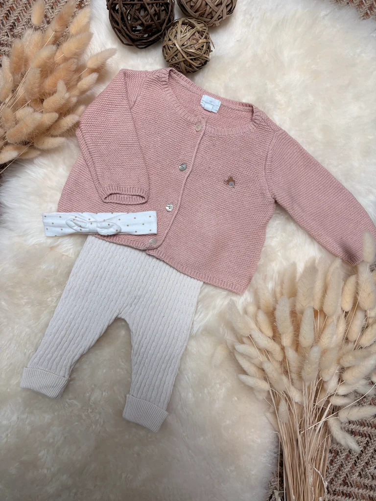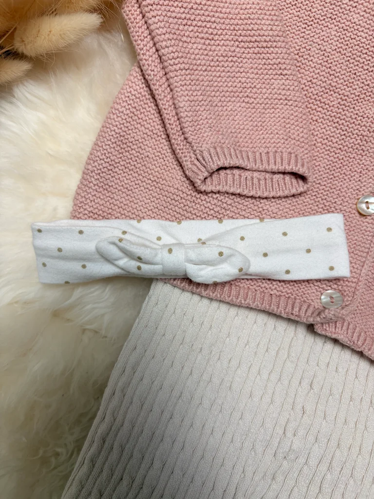 Gilet rose en maille Sergent Major Legging écru en maille tape à l’œil Bandeau blanc à pois doré Kiabi 3 mois Très bon état