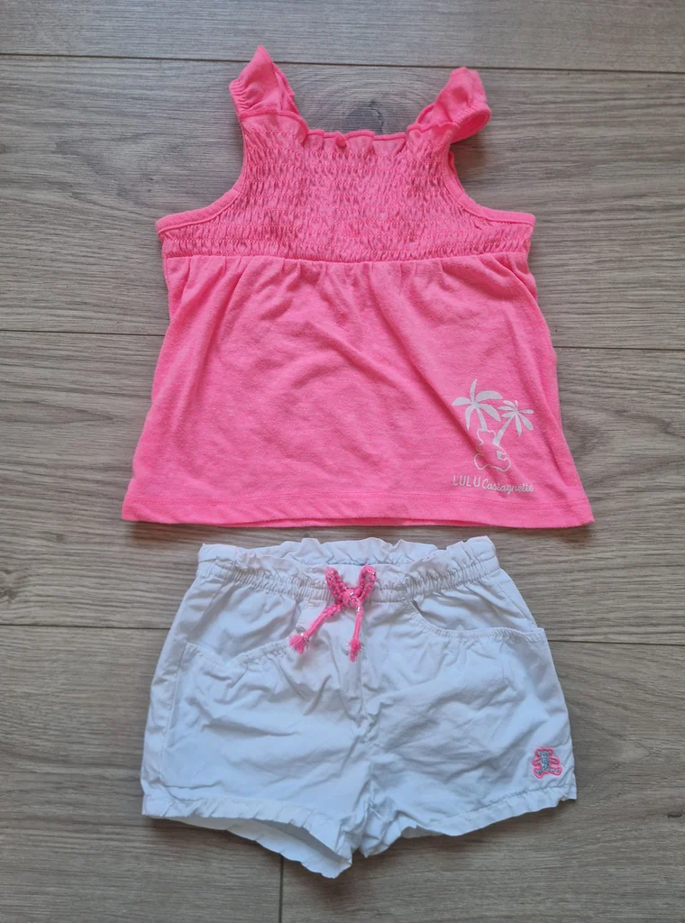 Ensemble LuluCastagnette, taille 12 mois, composé : • d’un débardeur rose à smocks, bretelles volantées, imprimé palmiers + ourson “Lulu Castagnette” • d’un short blanc avec taille élastiquée, lien décoratif rose et petites poches. Coupe confortable, parfait pour l’été. État : bon. L’ensemble a été porté mais reste en bon état général, tissu propre, couleurs jolies. Marque : Lulu Castagnette Taille : 12 mois Envoi rapide et soigné 📦 🔑 Mots-clés : ensemble bébé 12 mois, Lulu Castagnette, débardeur fille, short bébé, été, 1 an 🏷 Hashtags : #lulucastagnette #ensemblebebe #12mois #debarbeurbebe #shortbebe #ete #fille #vetementbebe #annesoofccb_bebe #annesoofccb_12mois