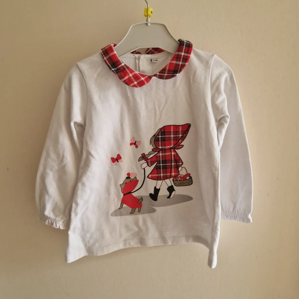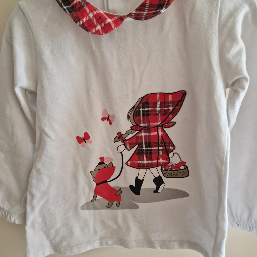 Haut manches longues Col claudine rouge Dessin style petit chaperon rouge Taille 23 mois