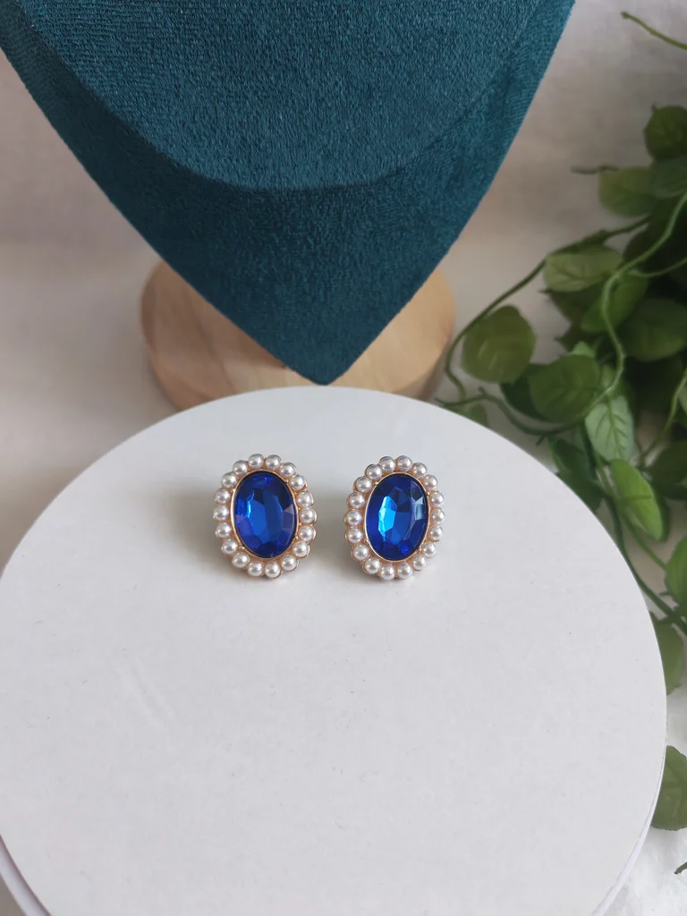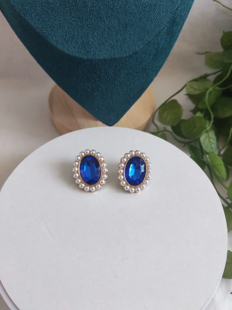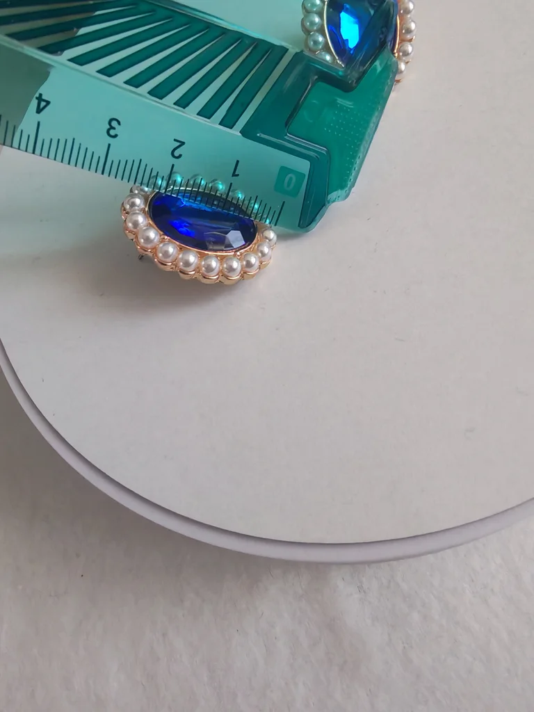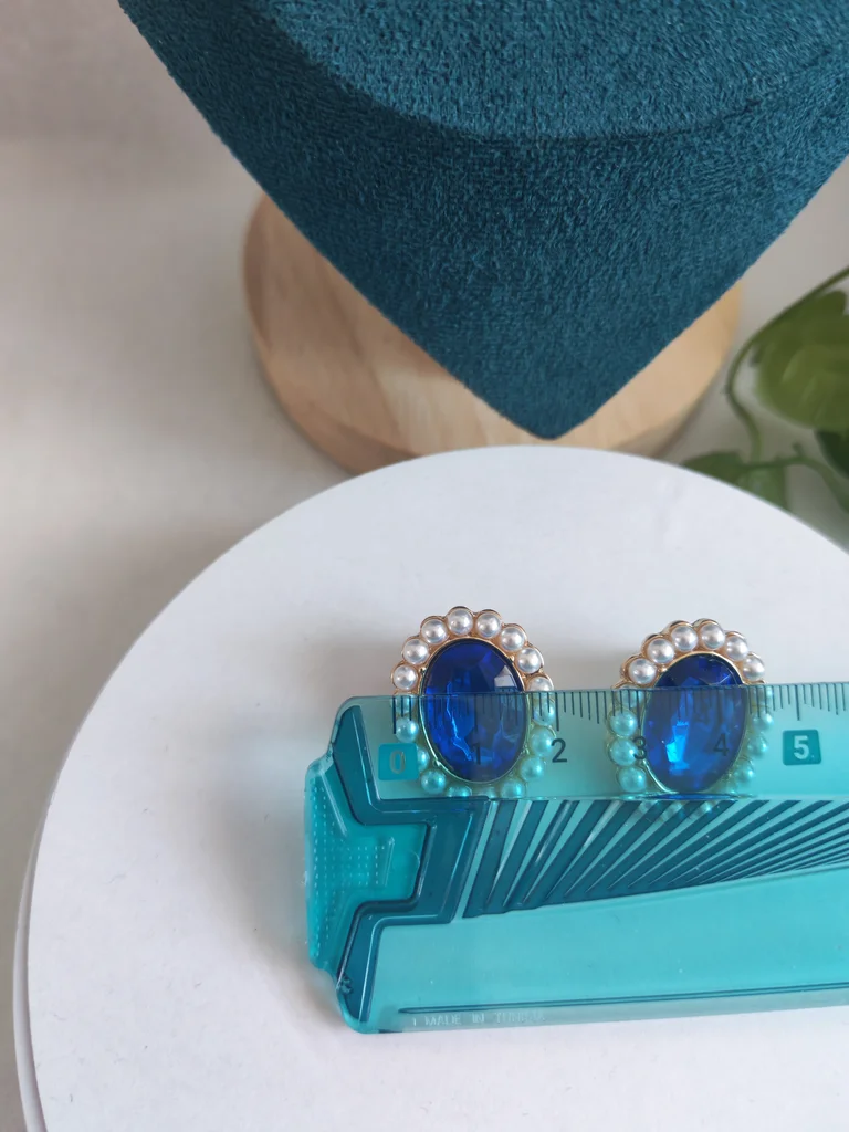 Boucles d'oreilles femme couleur dore,bleu et perles blanches Neuves jamais porté Envoi rapide et soigné Une petite attention dans chaque commande