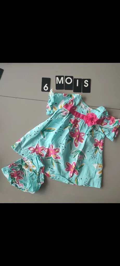👗 Ensemble bébé fille – Robe + Bloomer fleuri – Gémo – 6 mois – AnneLiseFinds 💛 AnneLiseFinds – lots bienvenus, envoi rapide 📦 Adorable ensemble bébé fille composé d’une robe et d’un bloomer, marque Gémo, taille 6 mois. Un ensemble doux, pratique et facile à enfiler, parfait pour l'été au quotidien ou les sorties. 🌟 Caractéristiques : 👶 Taille : 6 mois 🏷 Marque : Gémo 👗 Composition : • Robe fille – coupe confortable • Bloomer assorti 🧵 Style : Doux, pratique, facile à porter 📊 État : Très bon état ✔️ 💫 Idéal pour l’arrivée de bébé, la saison douce ou pour offrir en cadeau de naissance 🎁 📦 Envoi soigné et rapide. 💬 Posez vos questions ou composez votre lot, je réponds rapidement 😊 ✨ English summary: Baby girl outfit (dress + bloomer) by Gémo, size 6 months, soft and practical, very good condition. Illustration shown is for display only, ready to ship 📦 🔎 #ensemblerobe #bloomer #bebefille #6mois #gemo #vetementsbebe #modebebe #tenuedujour #ete #chaleur #chaud #anneLiseFinds #annelisefinds6mois