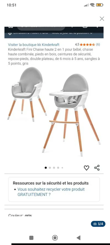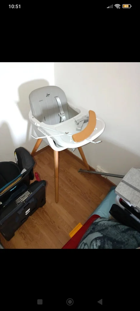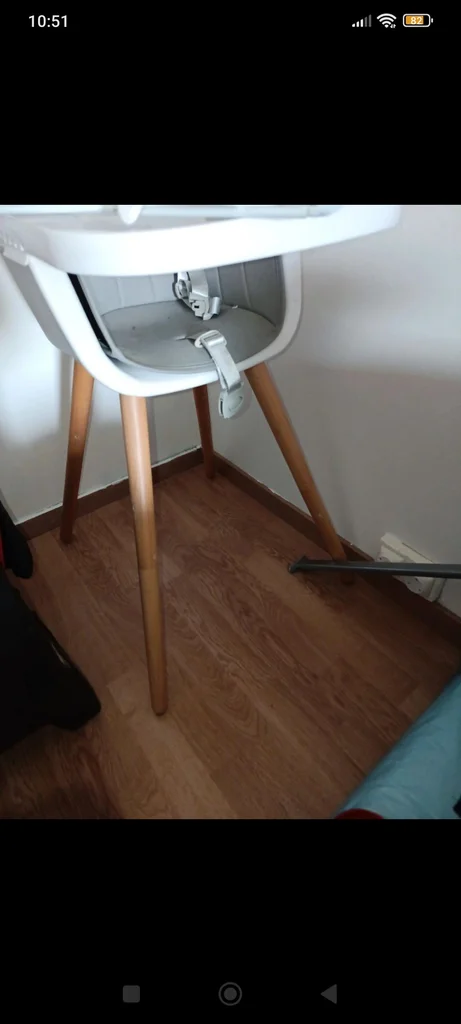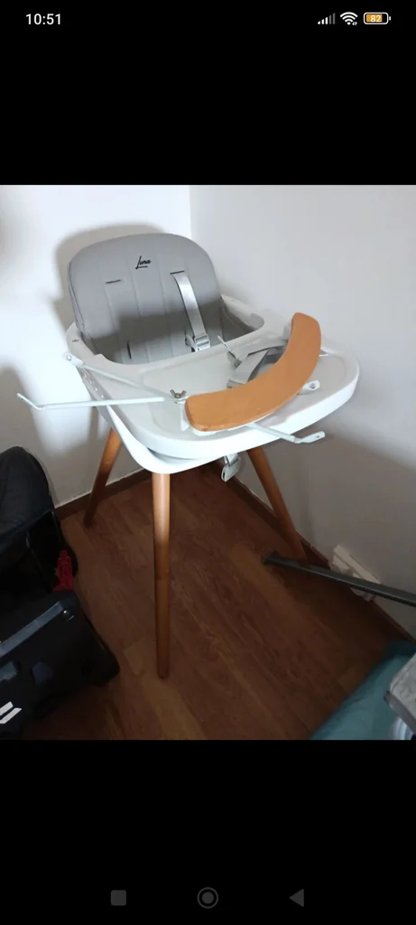Chaise haute tablette réglable pied réglable peut se transformer en petite chaise jusqu'à l'âge de 6 ans déhoussable lavable en très bon état très peu servi Complète là barre au milieu la tablette pour les pieds en bas et tous les harnais a venir chercher