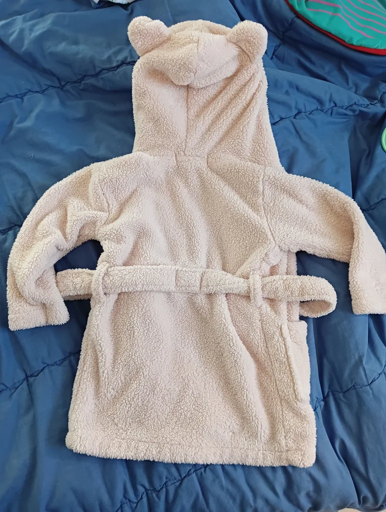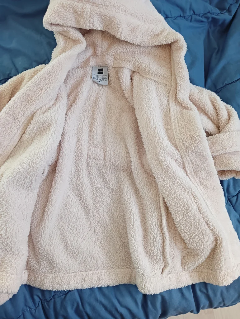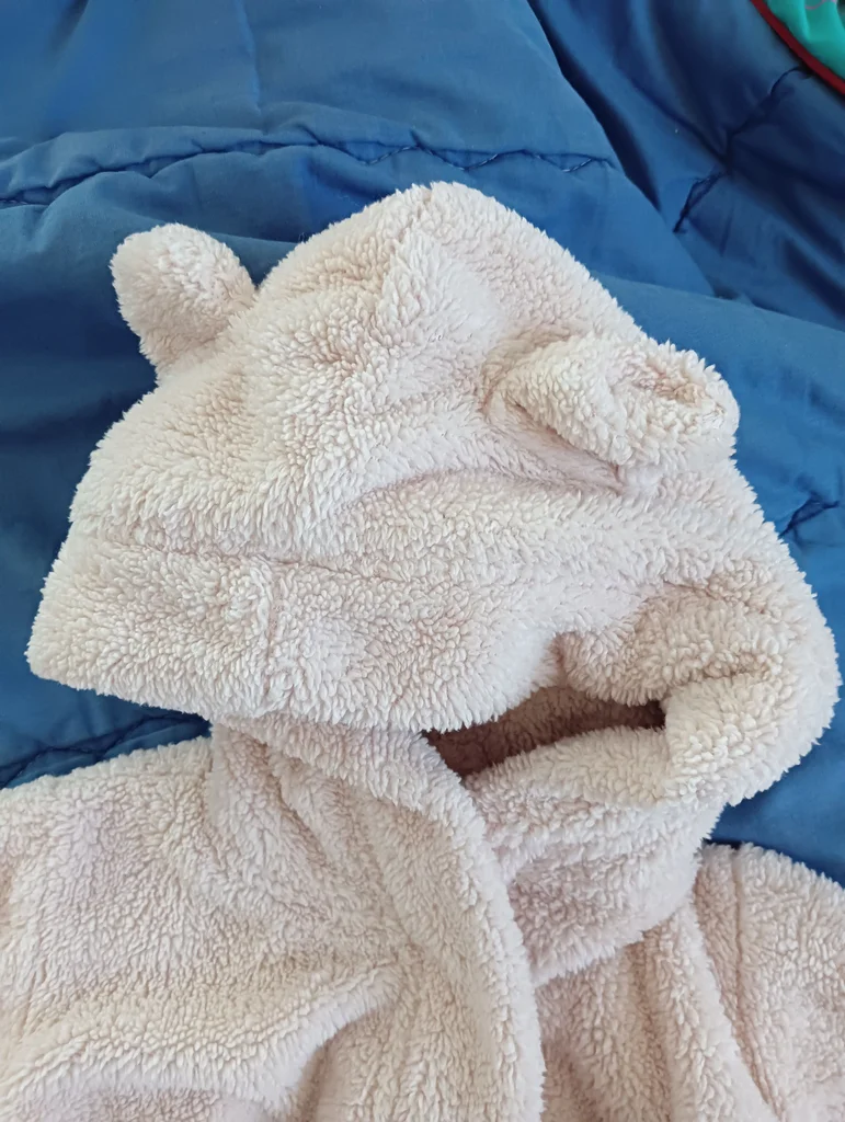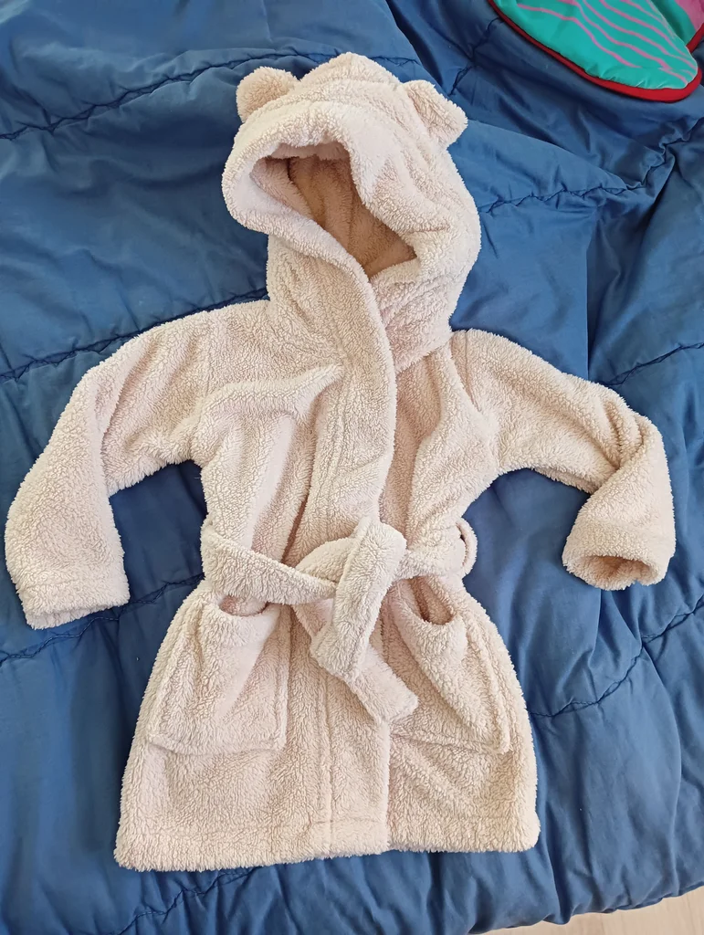 🔹 Peignoir / Robe de chambre, Couleur mixte . En très bon état. ▪️Taille 2/4 ans ▪️Marque " Tissaia" ▪️capuche rigolote avec des petites oreilles + une ceinture. ▪️100% polyester