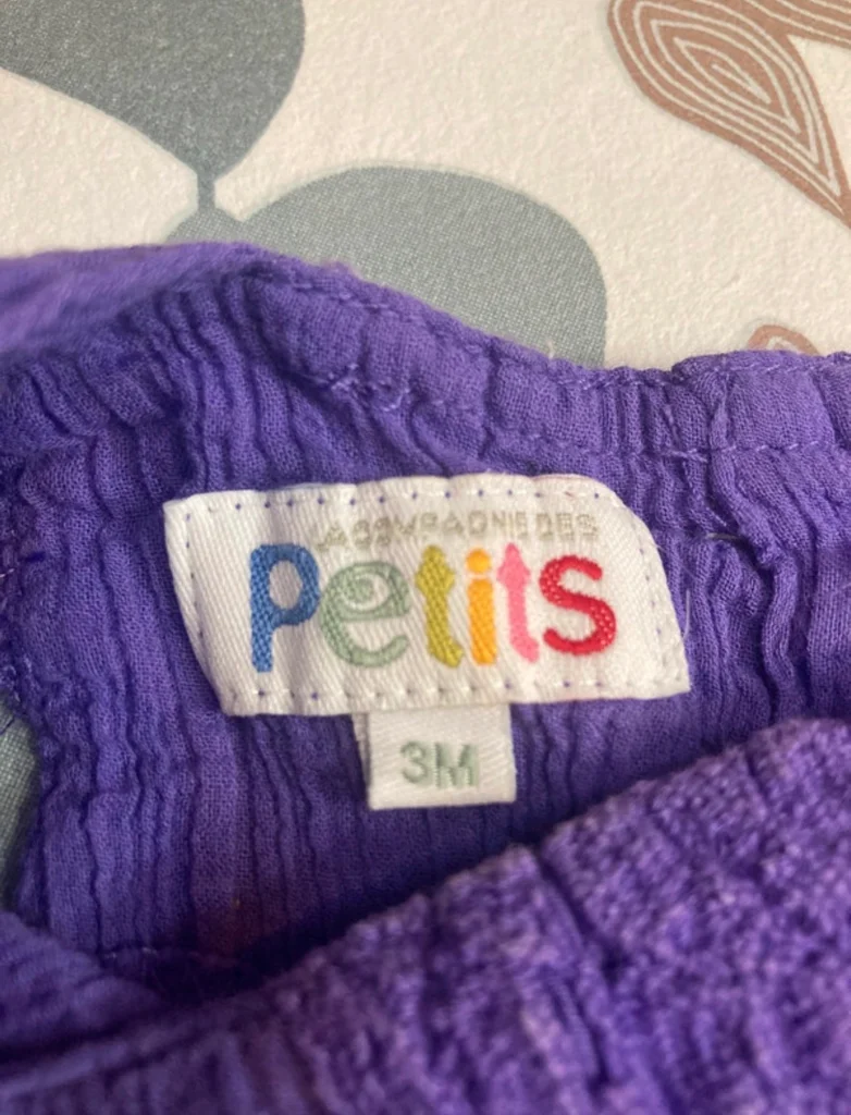📦 Jolie petite robe estivale 🎨 violette Très fluide, 💯 % coton Manches courtes, boutons dans le dos. Robe en excellent état 📏 longueur : 33 cm Taille 3 mois LA COMPAGNIE DES PETITS ✨envoi rapide et soigné