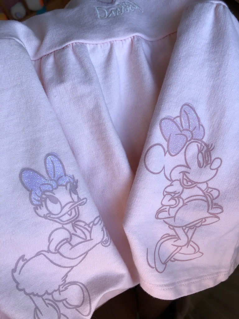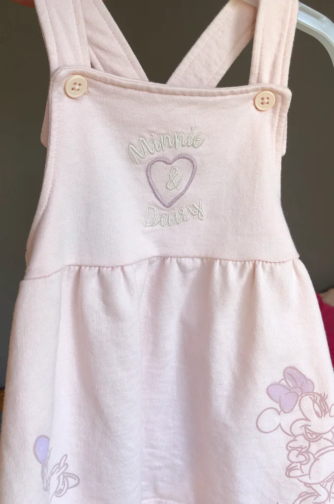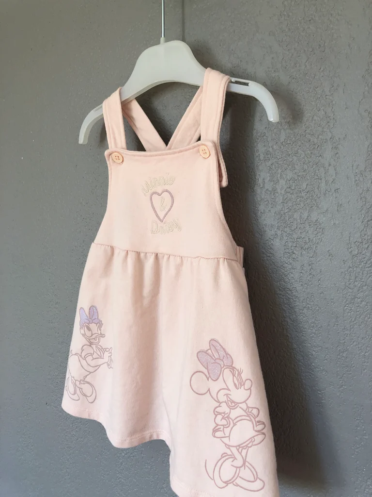 Robe Disney X Primark, Taille 6-9 mois/ 74 cm, 100% coton, Longueur des bretelles réglables par boutons. Très mignonne, à porter avec un joli body ou t-shirt en dessous. Robe rose pâle, motifs Minnie et Daisy avec leurs nœuds mauves, à paillettes, cœur brodé sur l’avant Nœud dans le dos. Comme neuve, pas de signe d’utilisation 🌸 N’hésitez pas à regarder mes autres annonces, j’ai beaucoup de choix.