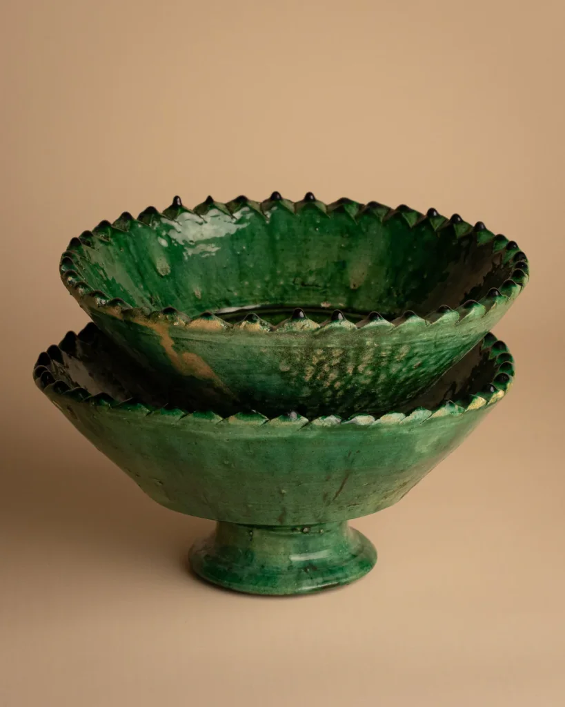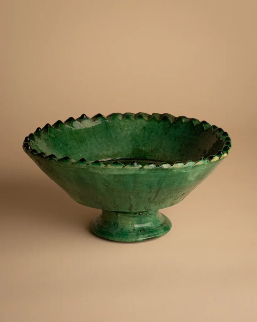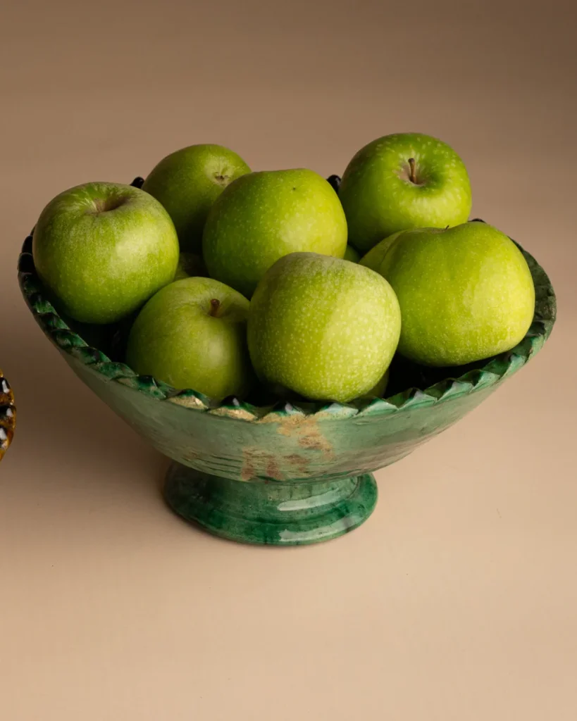 Sublimez votre intérieur avec cette coupe à fruits en céramique artisanale, couleur ocre, façonnée à la main dans le village de Tamegroute, au sud du Maroc. Avec ses 18 cm de diamètre, elle allie générosité des formes et élégance brute, tout en mettant à l’honneur le savoir-faire ancestral des potiers locaux. Sa finition émaillée et ses nuances naturelles apportent du caractère à votre table ou votre décoration, qu’elle soit garnie de fruits frais ou laissée vide en pièce centrale. Dimensions : env. 18 cm de diamètre Conseils d’entretien : • Ne pas mettre au lave-vaisselle • Éviter l’immersion prolongée dans l’eau • Nettoyer délicatement à l’aide d’une éponge humide