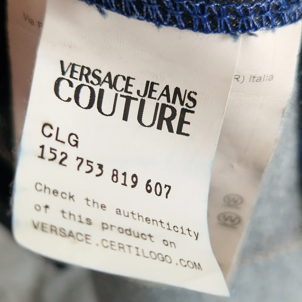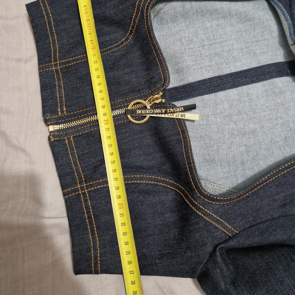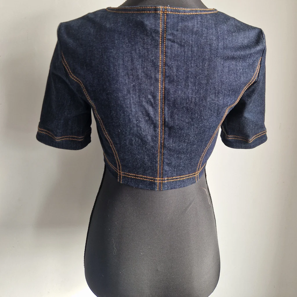 Magnifique top Versace Jeans Couture en denim. Légèrement extensible • Taille : S (FR 36)• Marque : Versace Jeans Couture• Matière : denim / jean• Fermeture : zip frontal avec anneau signature Versace• Manches courtes• Coupe : crop top / bustier structuré