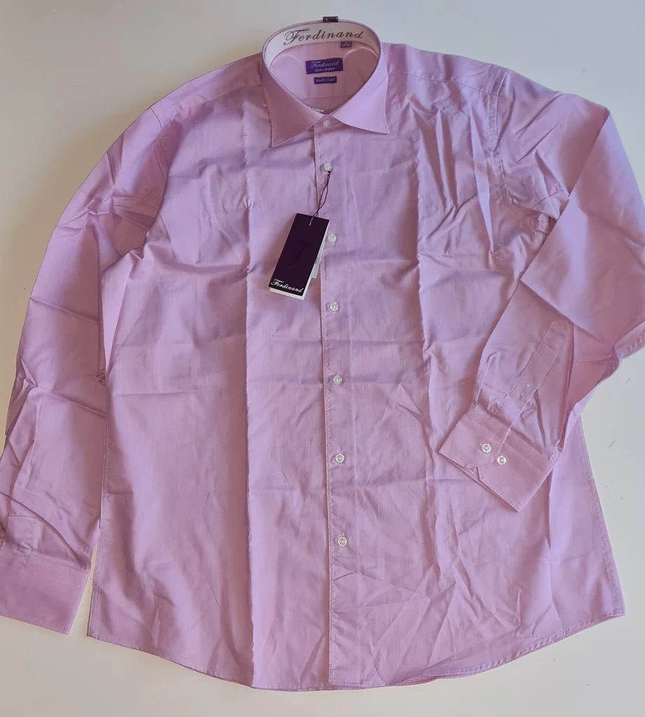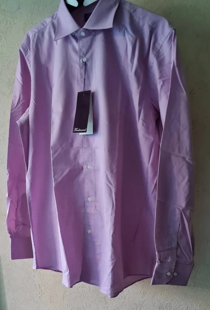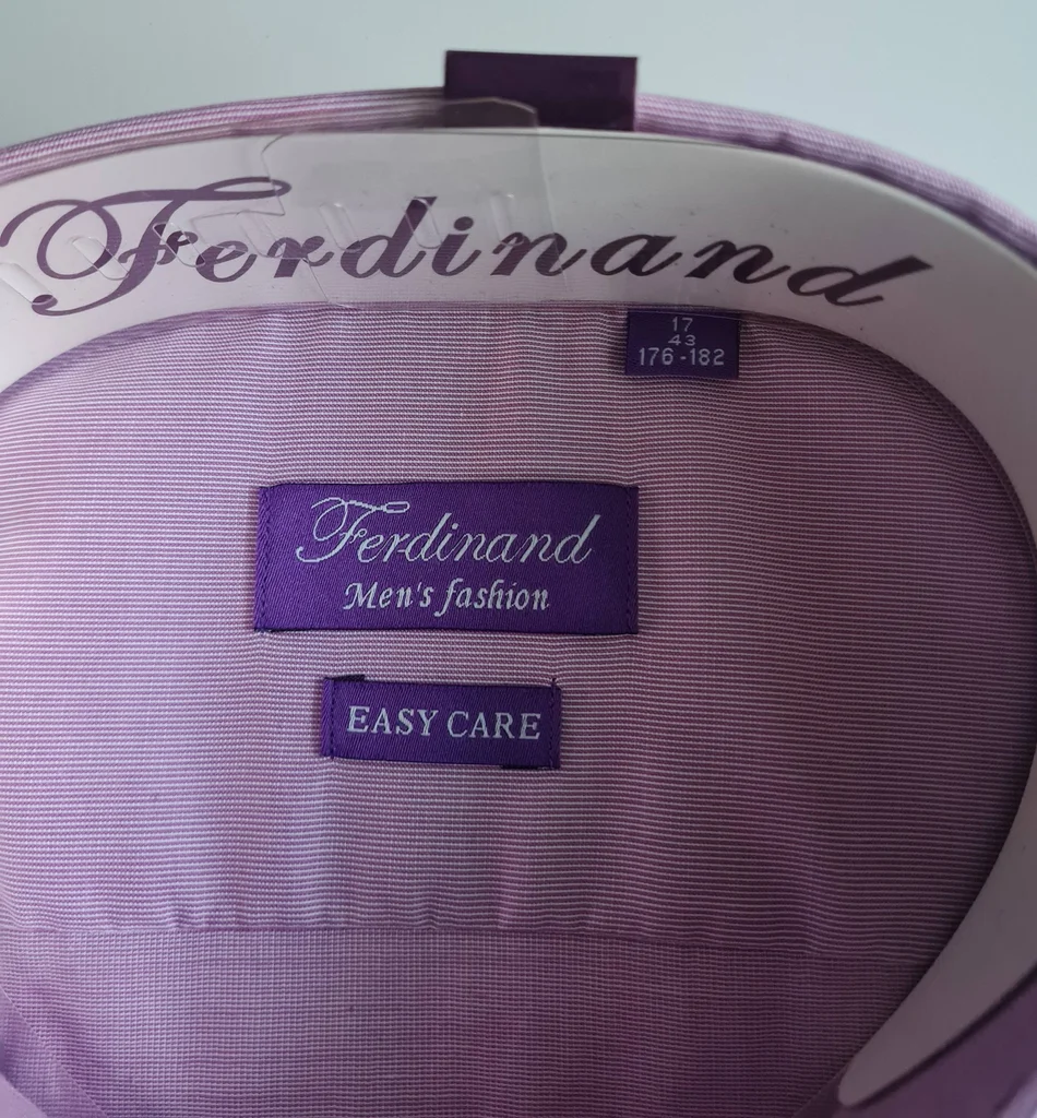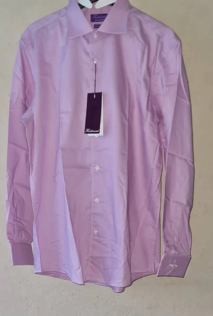 FERDINAND Men's fashion neuve étiquette très petites rayures rose/parme et blanche longueur environ 80cm épaules 50cm manches 67.5cm aisselles 64.5cm #lesplacardsenfoliehomme #lesplacardsenfolietailleXL ref1