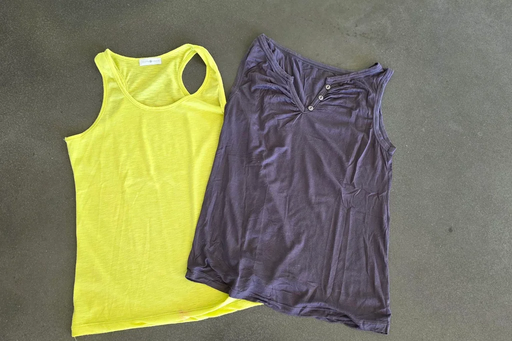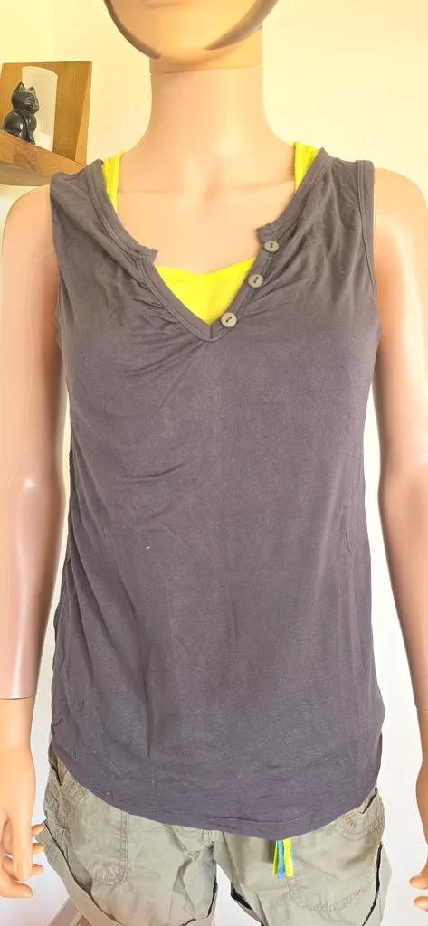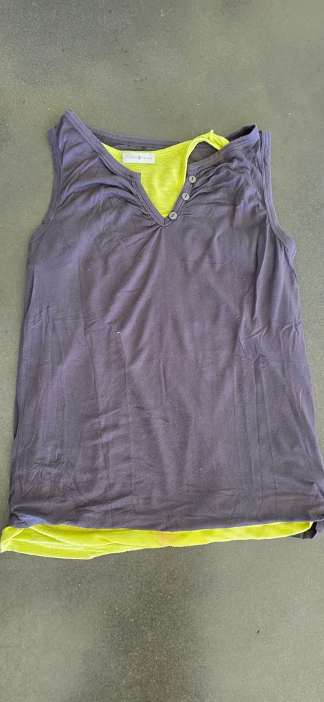Debardeur double Peut se superposé ou Porté seul Correspond a une taille M L Coloris gris et jaune
