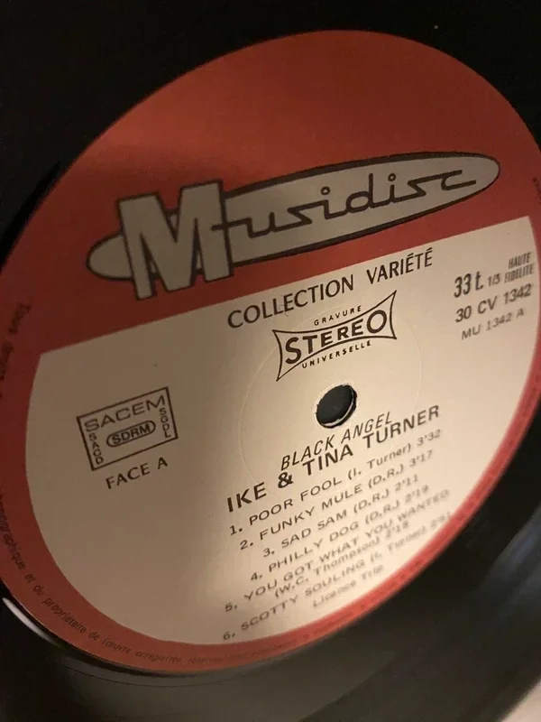 « Black Angel » désigne principalement une compilation d'Ike & Tina Turner parue en 1975. L'album regroupe majoritairement des morceaux instrumentaux issus du projet solo d'Ike Turner, A Black Man's Soul (1969), ainsi que des titres du duo datant des années 1961 à 1969. Label:Musidisc – 30 CV 1342 Série:Collection Variété Format:Vinyle, LP, Compilation Pays:France Sortie:1975 Genre:Funk / Soul Style:Soul, Funk Etat: Pochette VG+, disque VG+ Envoi rapide et soigné