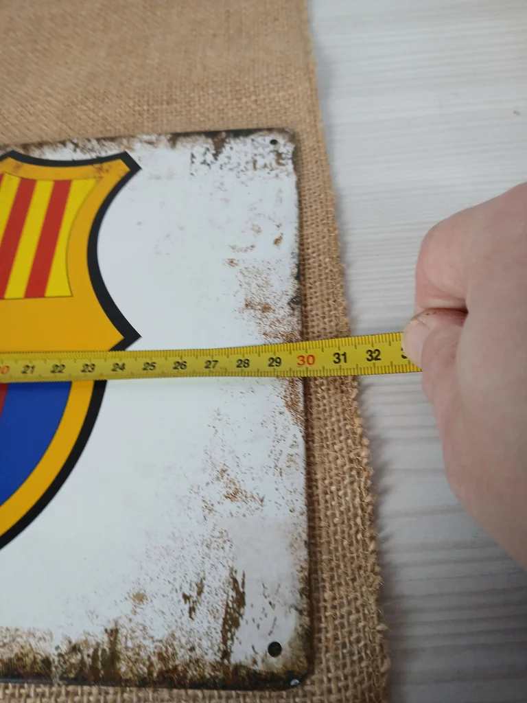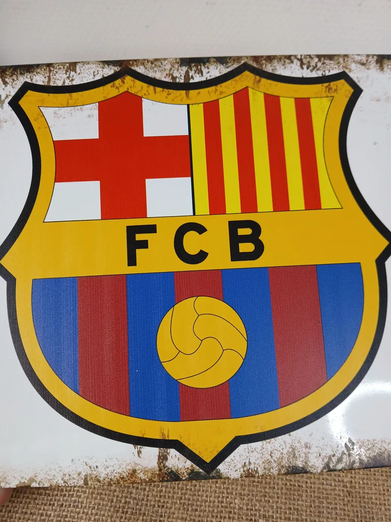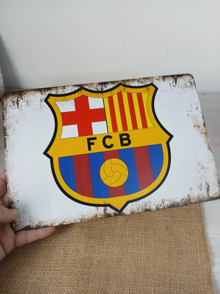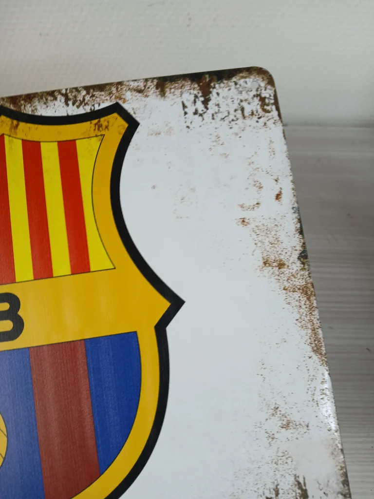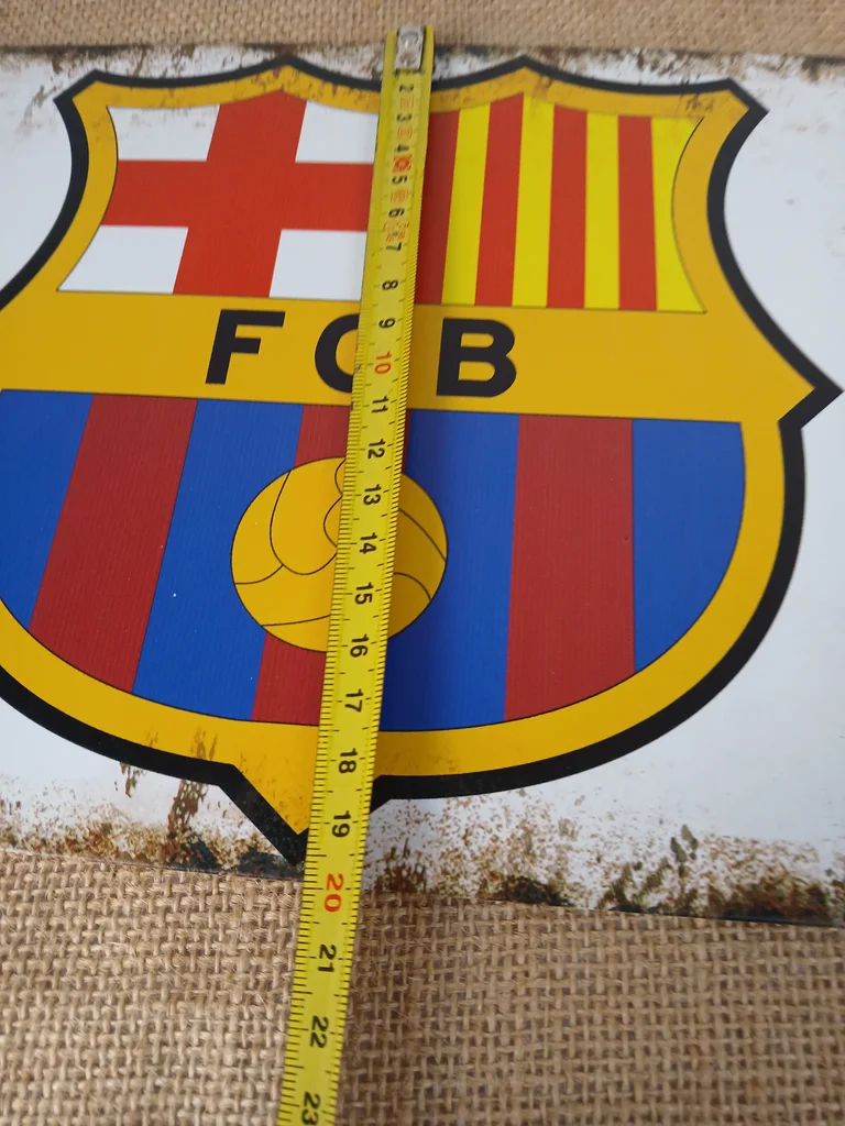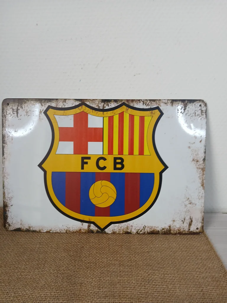 Plaque décoration Football FCB Barcelone Espagne De 20 cm sur 30 cm En taule 4 trous de fixation En très bon état
