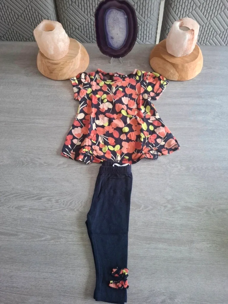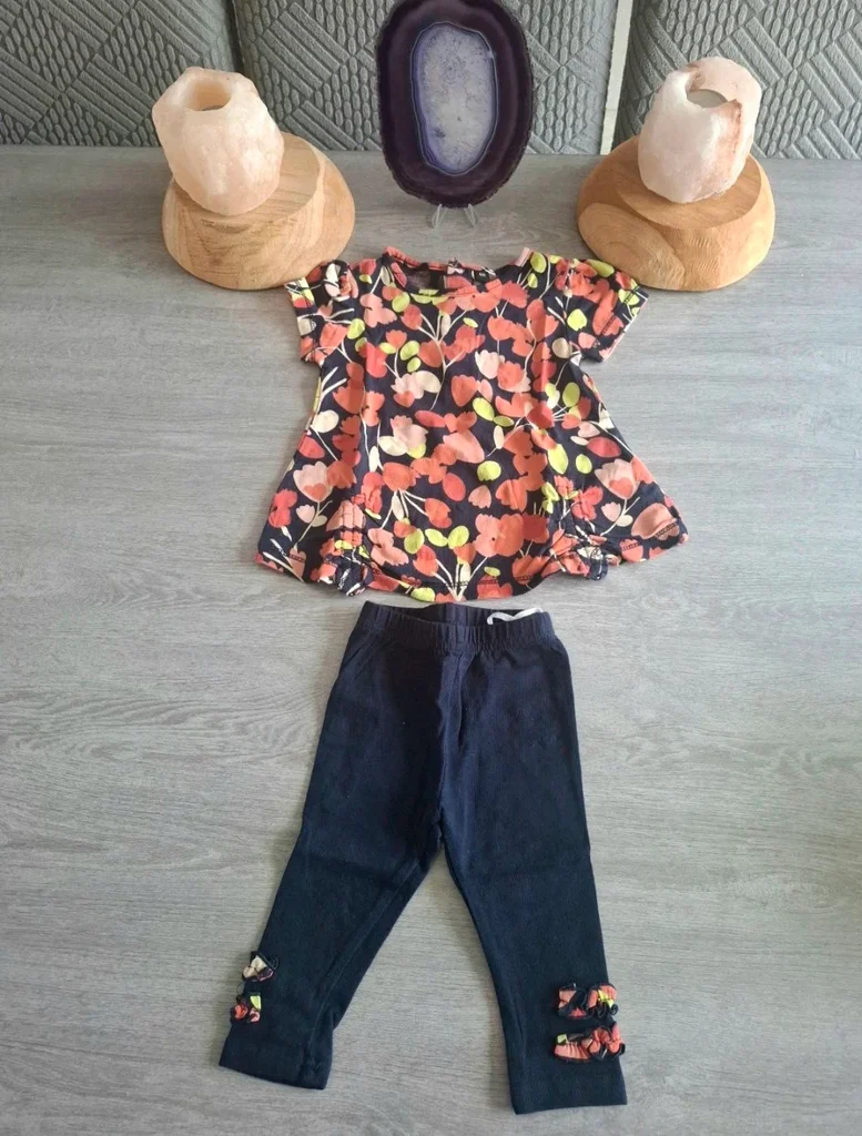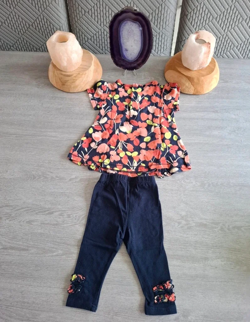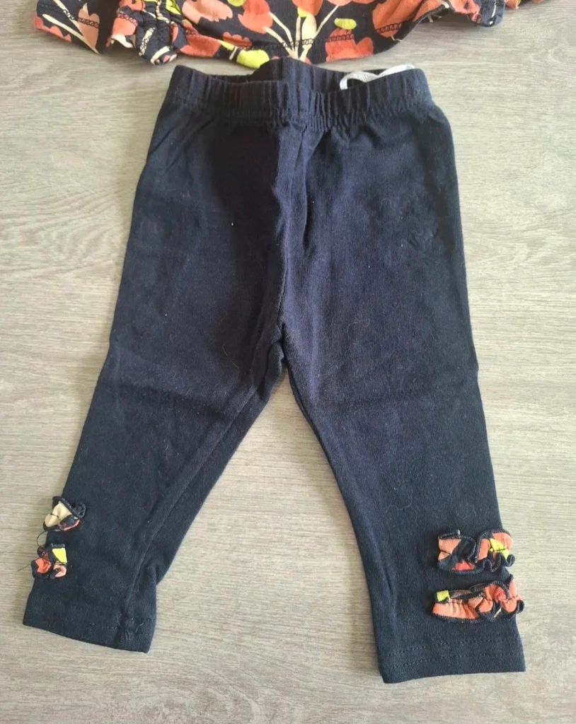 Accompagné de son leggings bleu nuit et petits volants aux chevilles