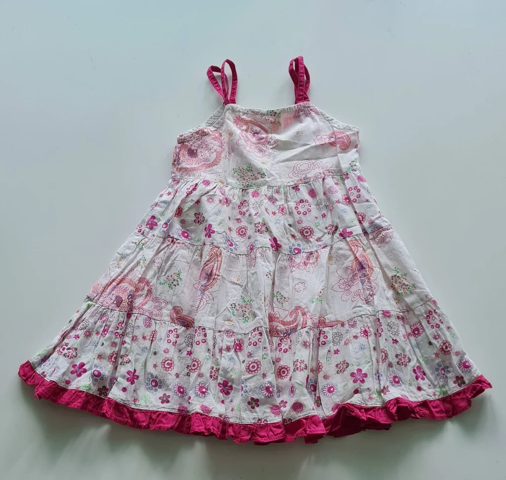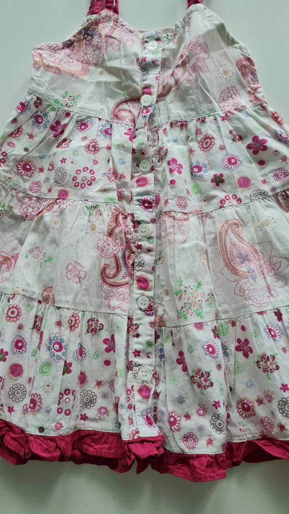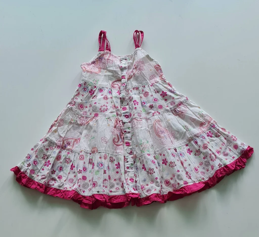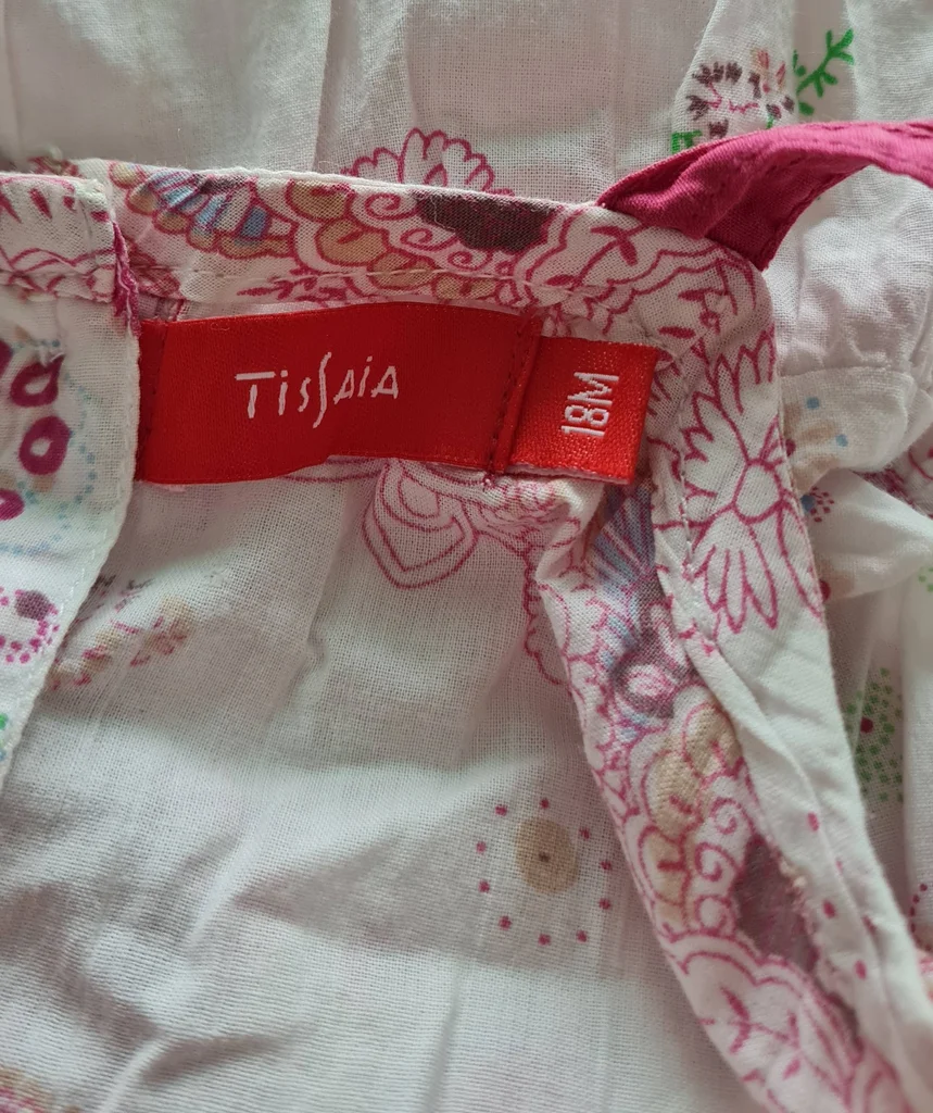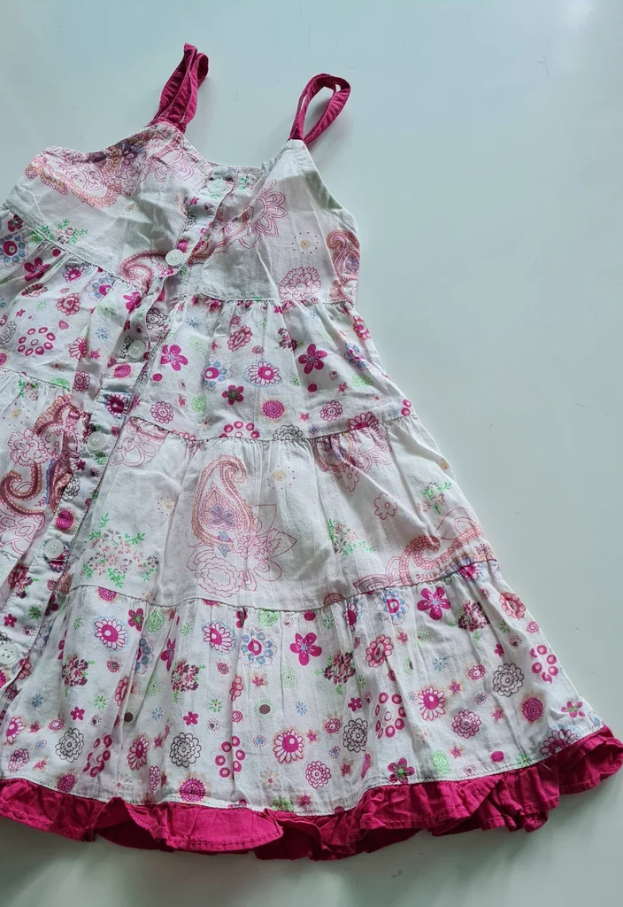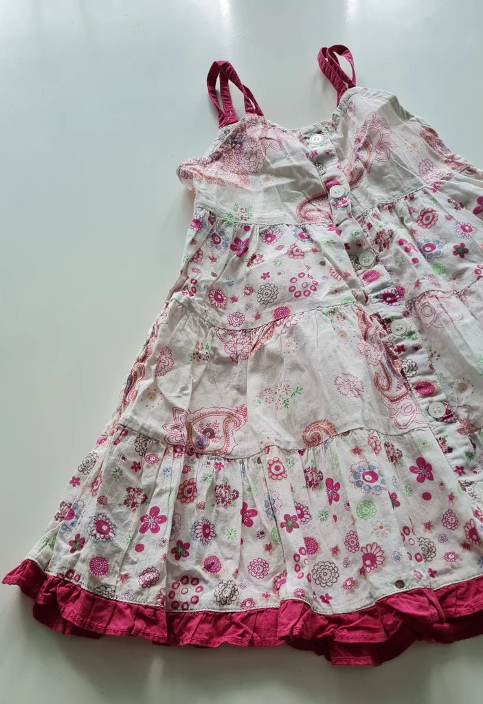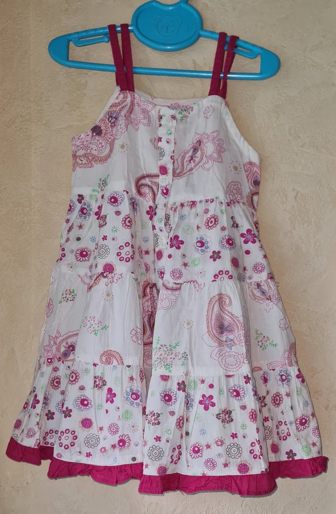 TISSAIA robe été blanche/fuchsia boutonnière devant longueur 54cm #lesplacardsenfolie18mois ref1