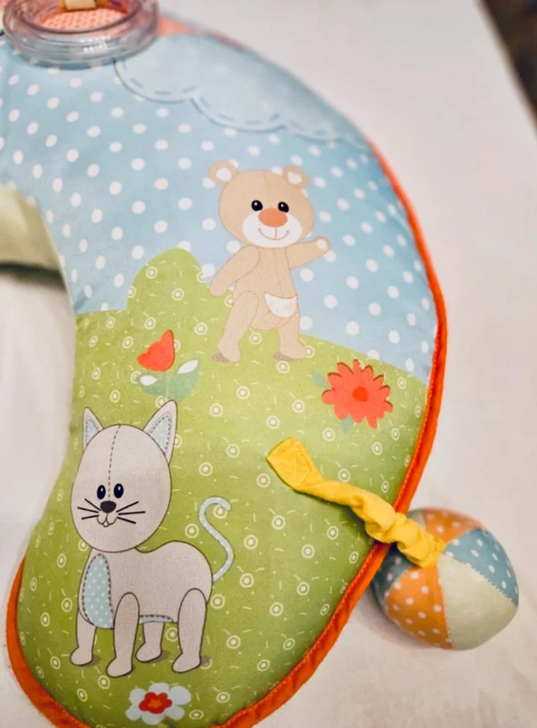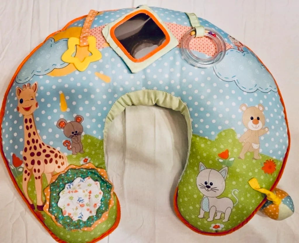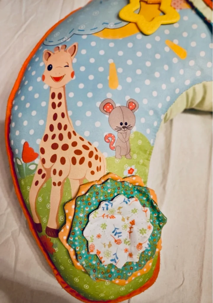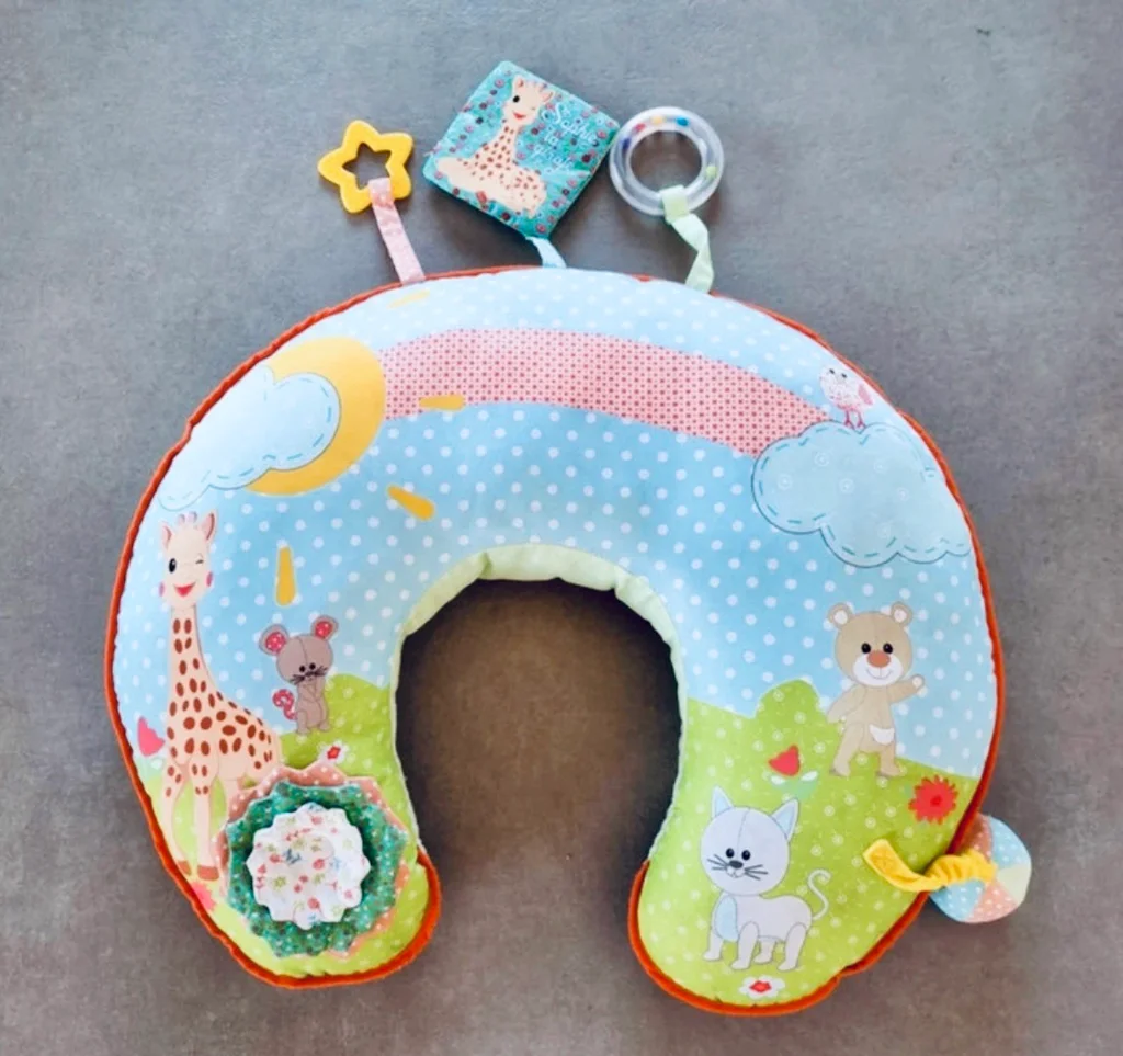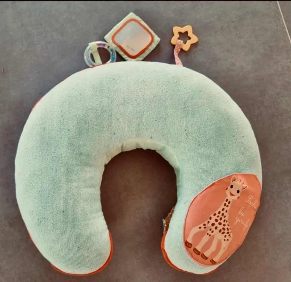 Coussin d’éveil bébé Sophie la Girafe 👶✨ Idéal pour les moments d’éveil et de jeu sur le ventre (tummy time). Avec plusieurs activités intégrées : textures, miroir, anneau et petits éléments à manipuler pour stimuler bébé. ✅ Très bon état ✅ Marque Sophie la Girafe ✅ Confortable et pratique ✅ Parfait pour stimuler l’éveil et la motricité Convient très bien pour les bébés dès les premiers mois. 📦 Envoi rapide et soigné 💬 N’hésite pas à me contacter si tu veux plus d’infos