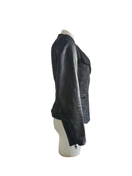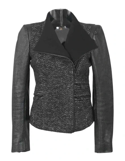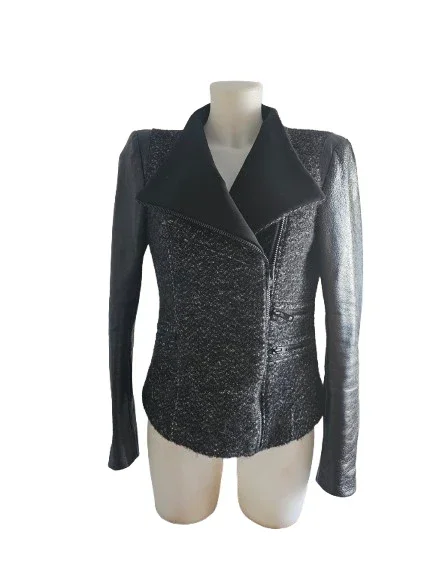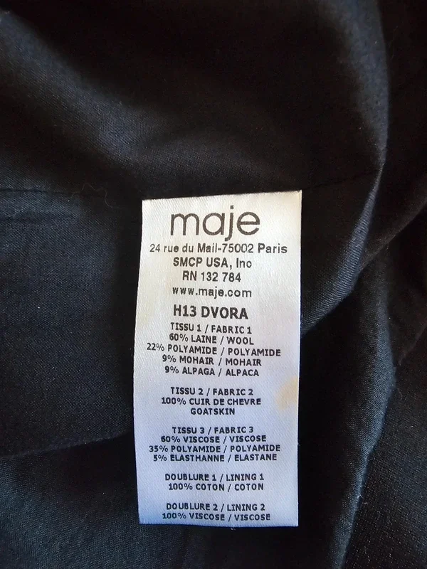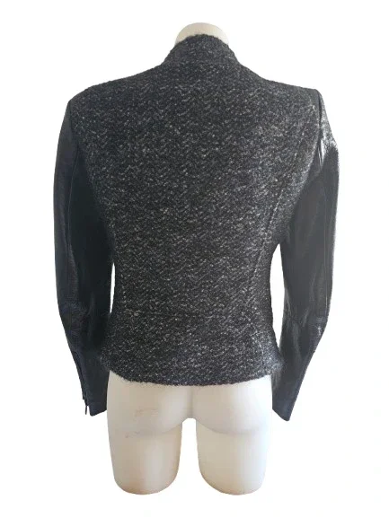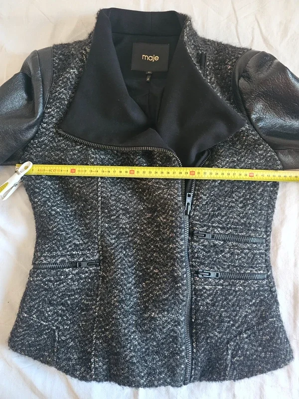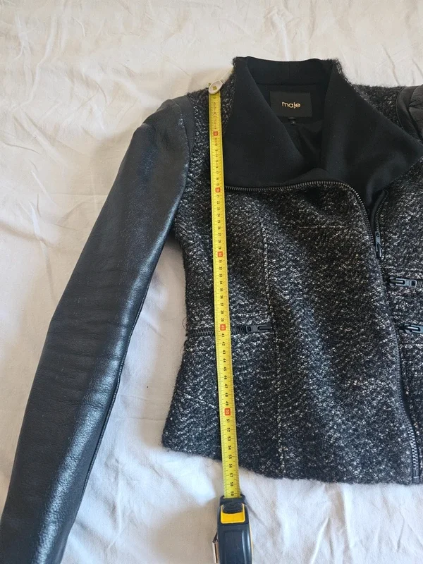 Veste Femme de la marque Maje, blouson en laine avec manches 100% en cuir. Tissu : 60% Laine, 22%, polyamide et 9% Mohair. Fermeture avec une fermeture éclair, style perfecto. En très bon état, taille 40. #Maje #vestebimatiereMaje #blousonMaje #blousonlaineetcuirMaje #vesteLajemanchesencuir #vestemajesuperetat #vestelaineMaje #BlousonMaje #VesteLaje