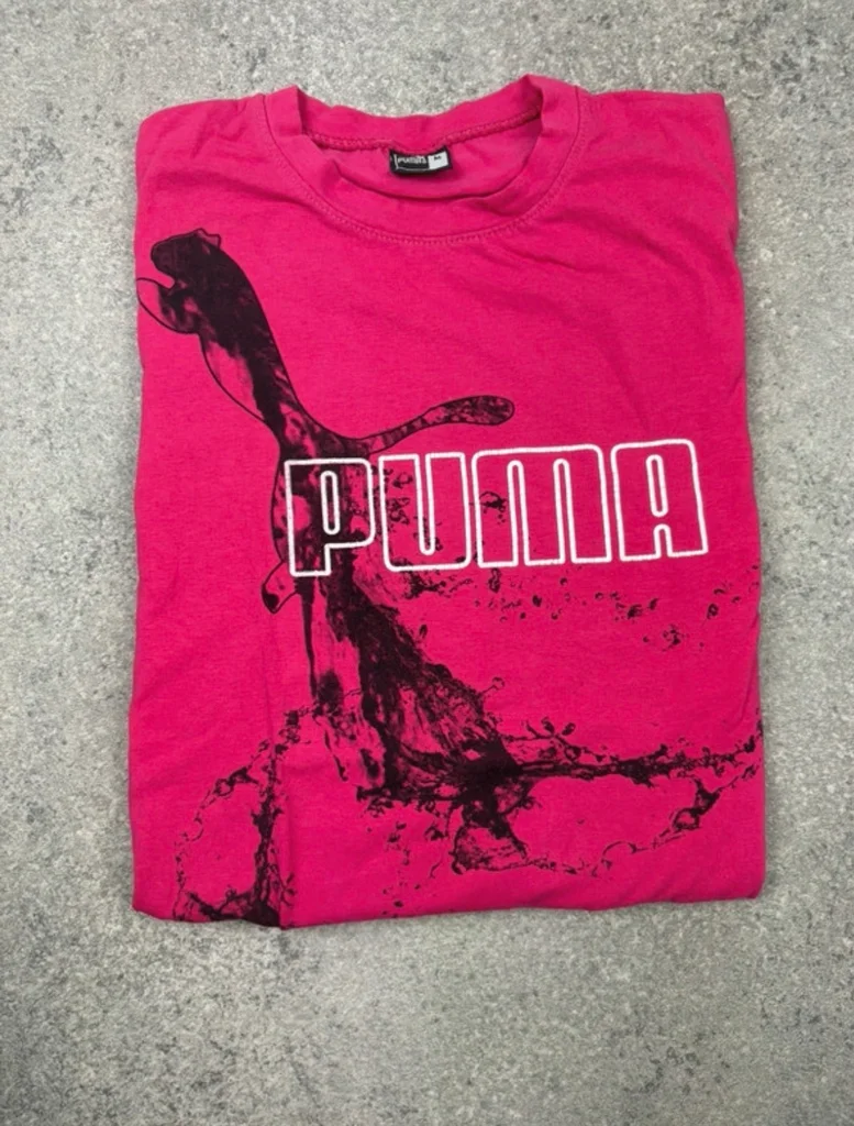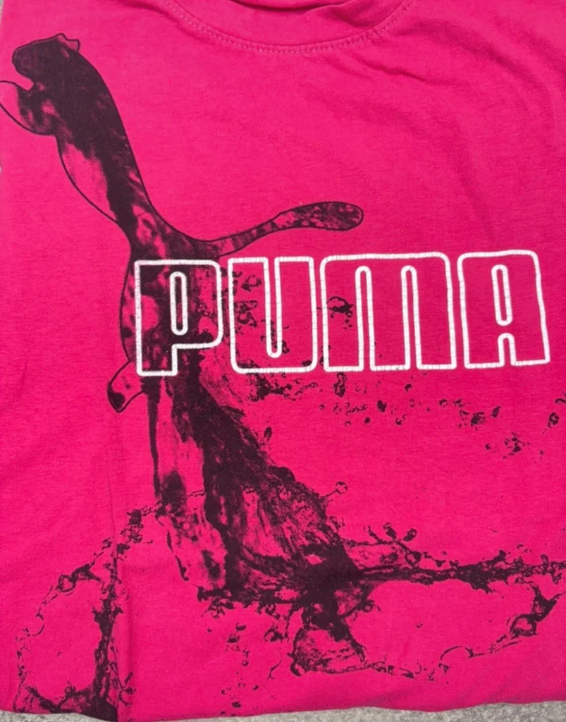 T-shirt Puma en très bon état. Modèle rose vif avec grand logo Puma graphique effet splash très stylé. Design original qui change des basiques.