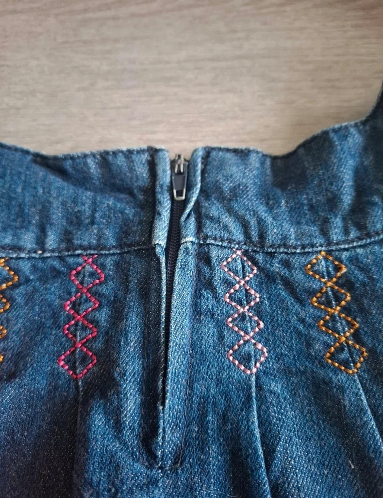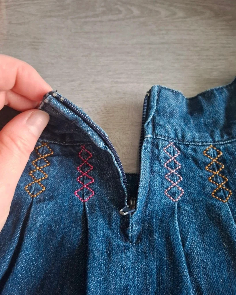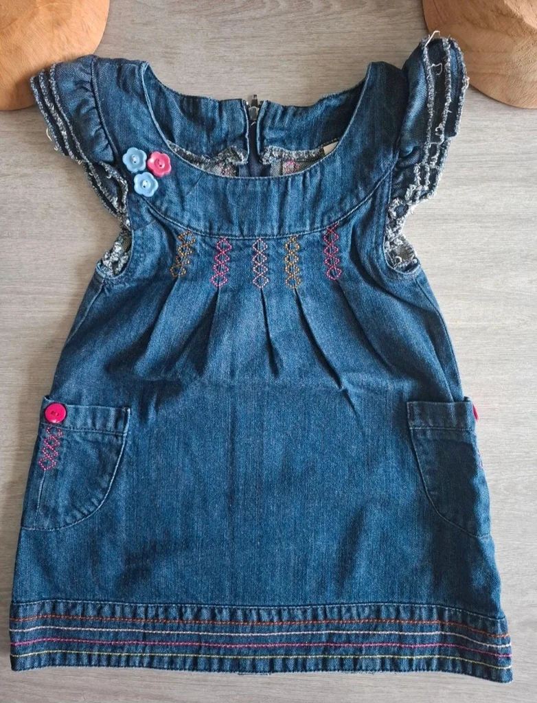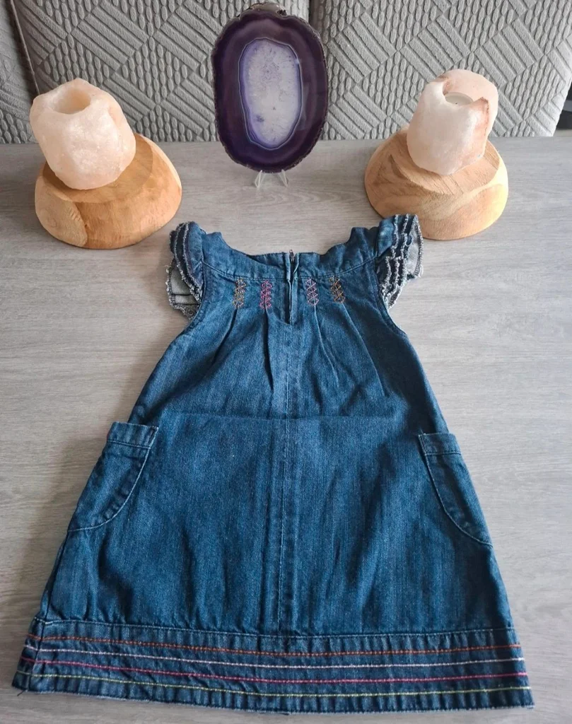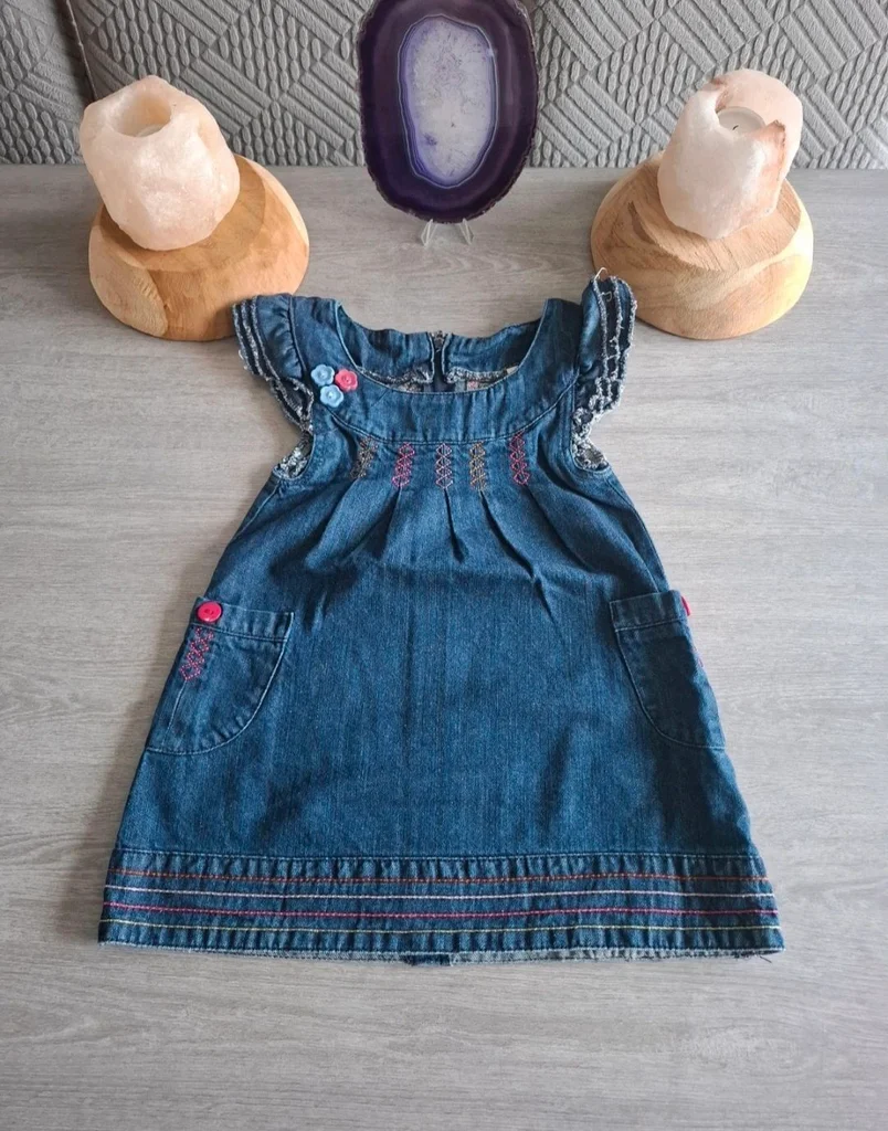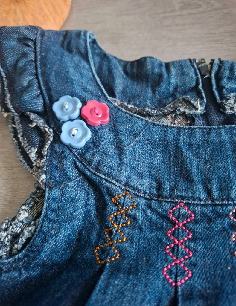 Magnifique robe en jean de couleur bleu Volants en jean sur les épaules Petites broderies et boutons décoratifs de couleur Taille 2 ans Excellent état Fermeture éclair fonctionnelle visible sur photos Sans Marque ✉️ 📩 Envois rapide et soigné ✉️ 📩 Maison non-fumeur 🏠