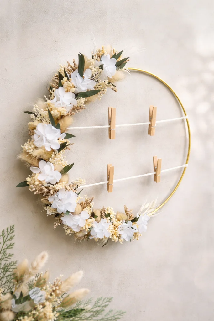 couronne florale personnalisée en fleurs séchées, parfaite pour décorer votre intérieur ou offrir en cadeau pour un mariage, une naissance ou un anniversaire. 🌸suivez-moi sur insta ➡️ les_creationsdefanny