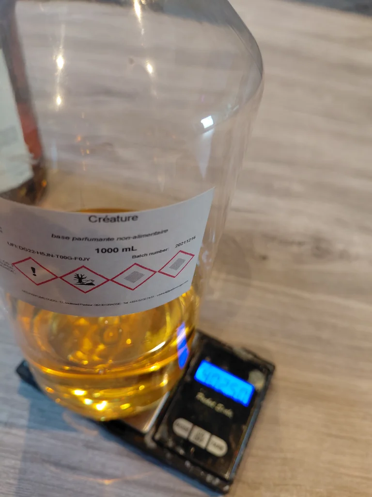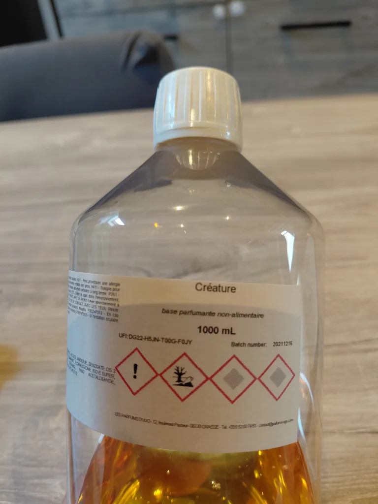 Parfum pour créer des fondants et/ou bougies Créature (alien) des parfums d’ugo Il reste 409gr dans le flacon