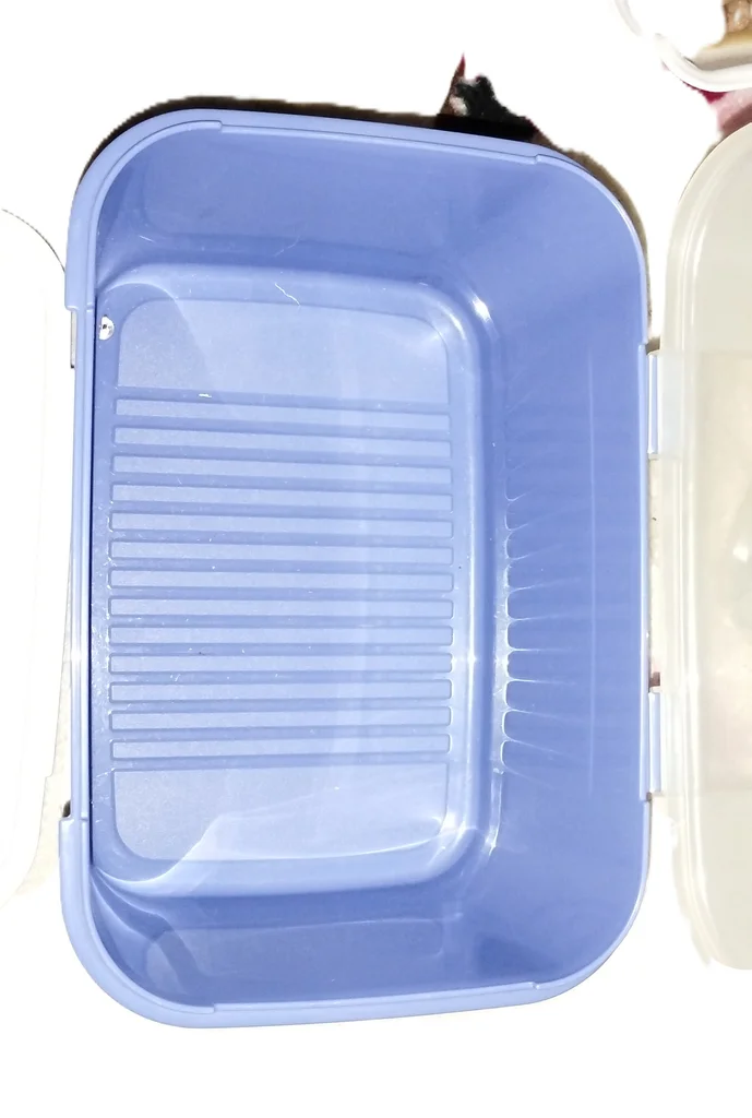 grande boite tupperware avec plateau supplementaire , 3 pieces, le couvercle s enlève ainsi que le milieu si pas besoin dimensions 28/30 large X 19/22 prof. X 20 haut cm