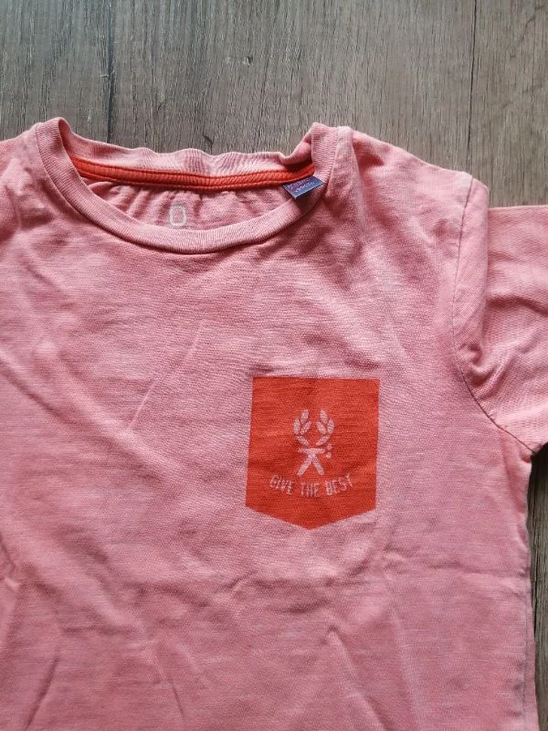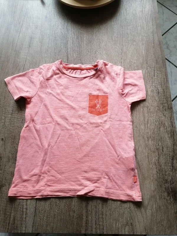 Tshirt garçon manches courtes Okaidi A était porté souvent Petit trou dans le bas du dos (voir dernière photo) Couleur saumon
