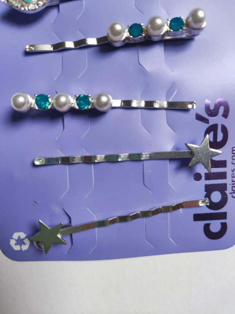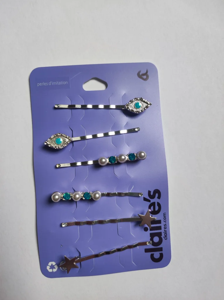 6 barrettes à cheveux neuves - Claire's argentée et turquoise + perles