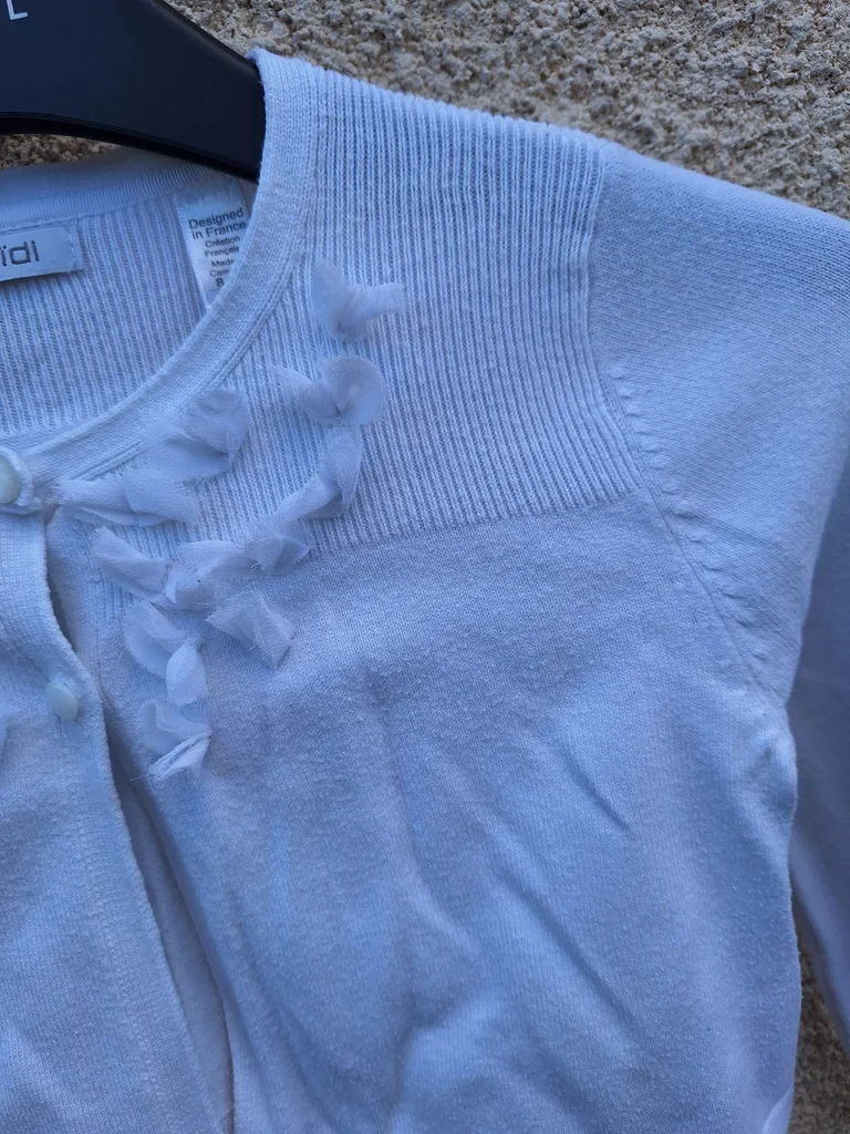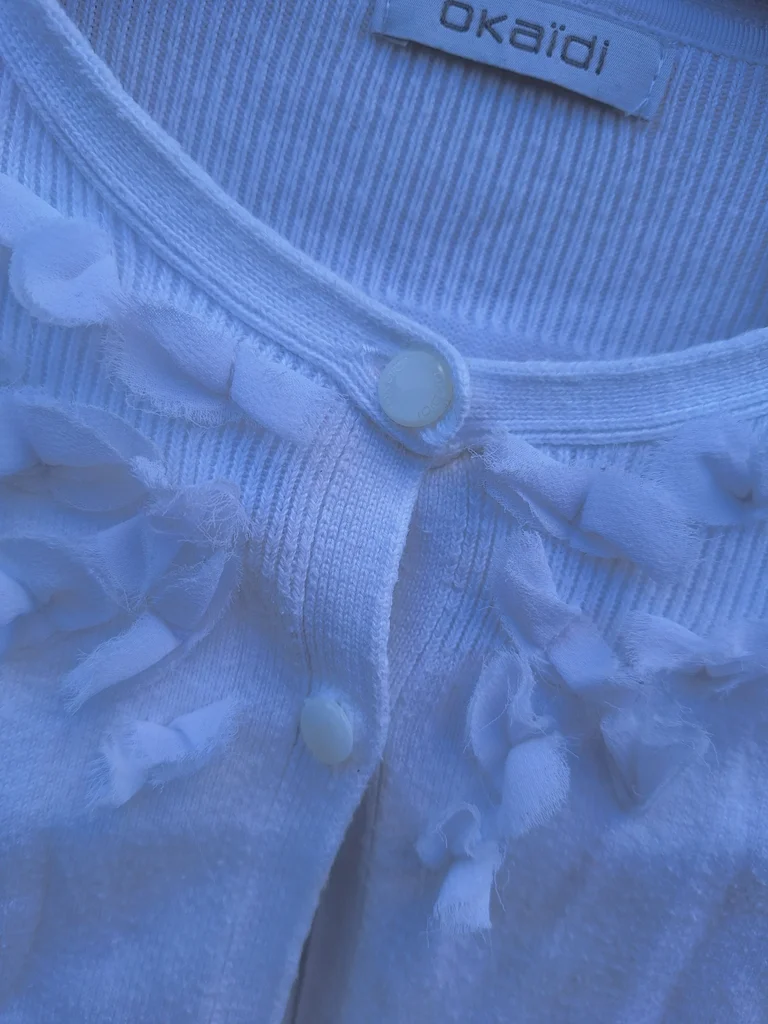 Gilet court à manches longues à porter sur une robe par exemple Marque Okaïdi Taille 8 ans 126 cm Couleur blanc uni Imprimé avec motif tissu à relief au recto, stries Fermeture par boutons Très bon état 🚨 Réductions activées sur les lots 🚨 🟡 2 articles -5% 🟠 3 articles -10% 🔴 5 articles et plus -15% #8ansfilleevaura76 #gilet #okaidi #8ans #126cm