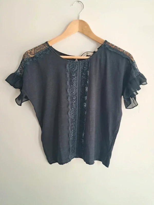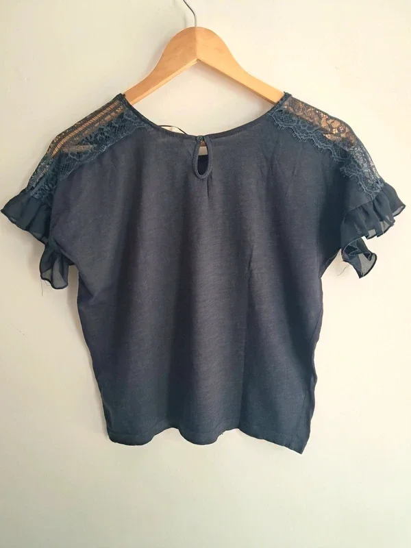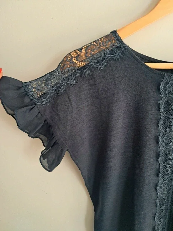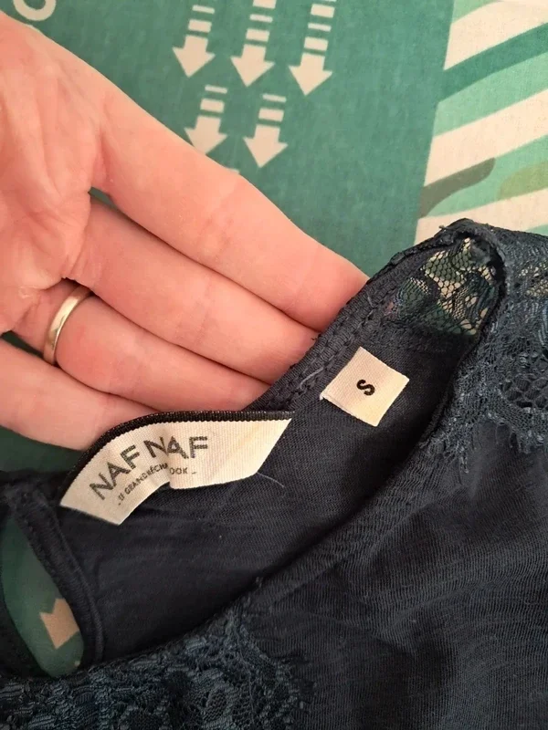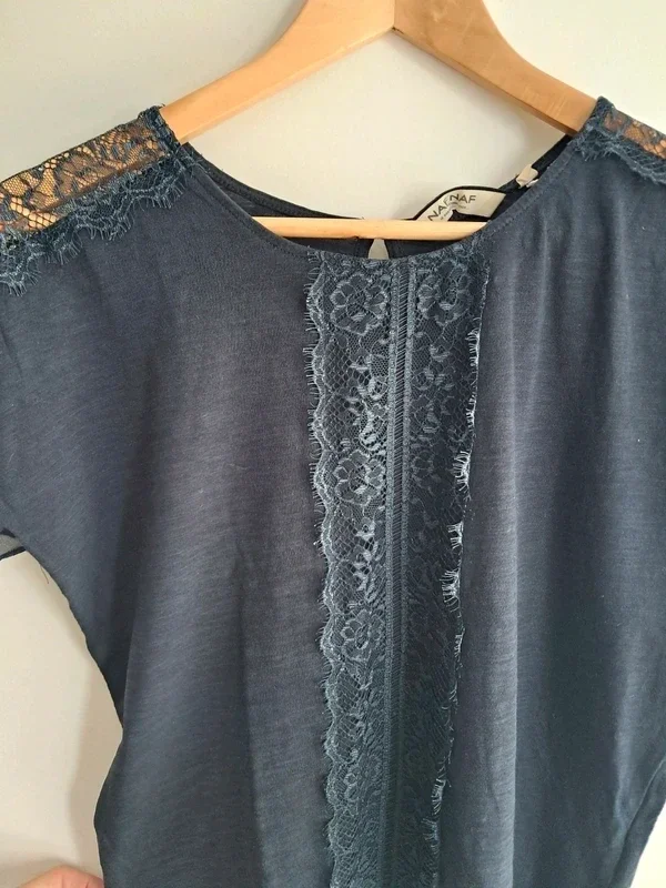 Joli tee shirt / blouse bleu foncé avec dentelle Excellent état, taille S, marque Naf Naf