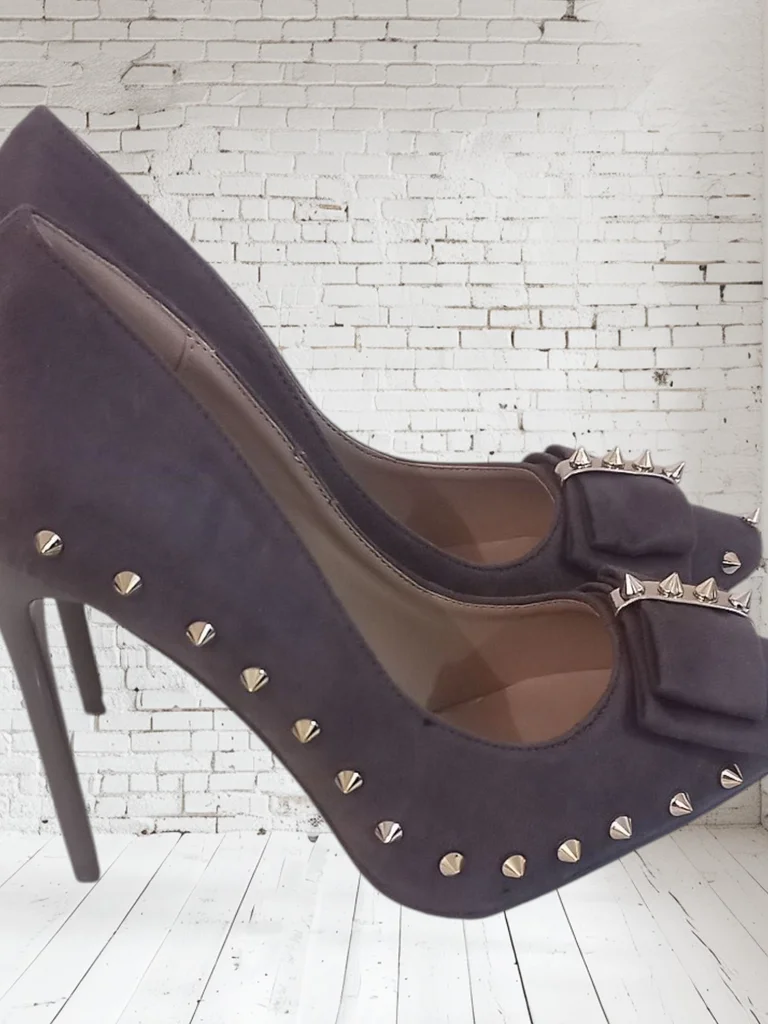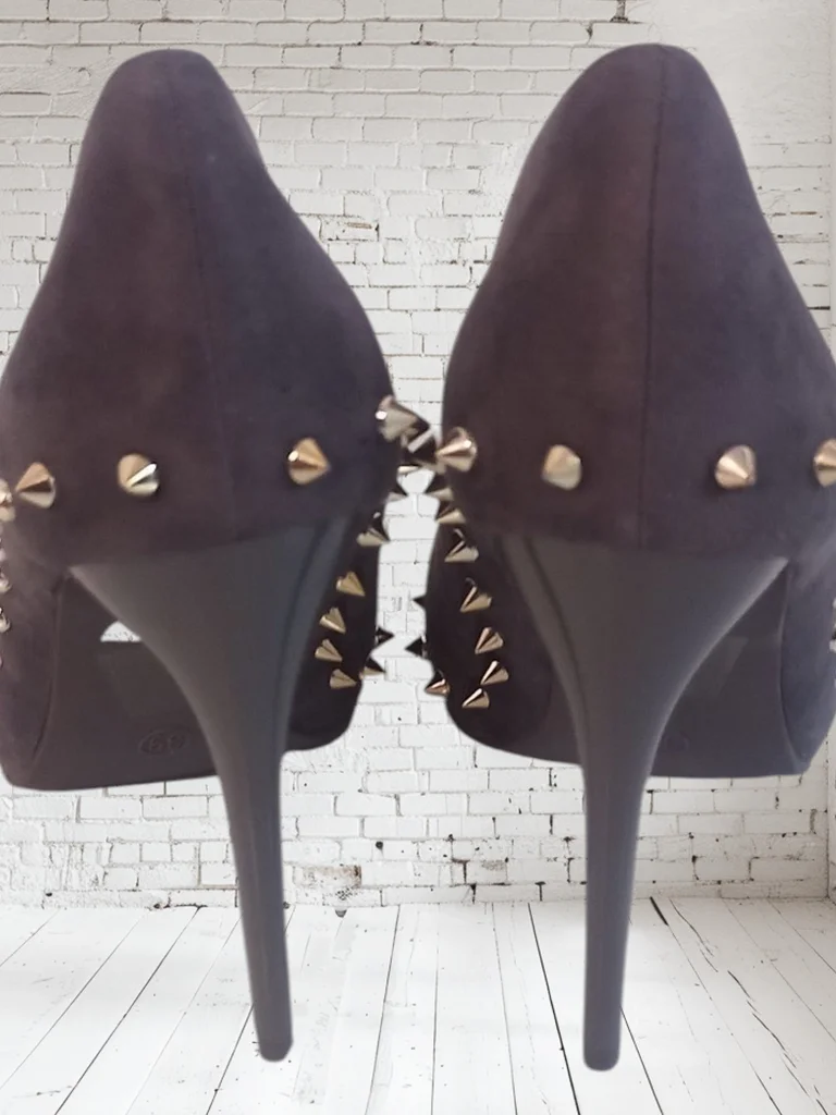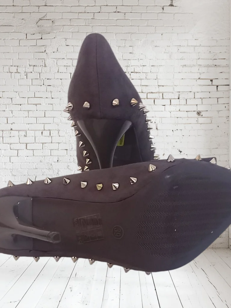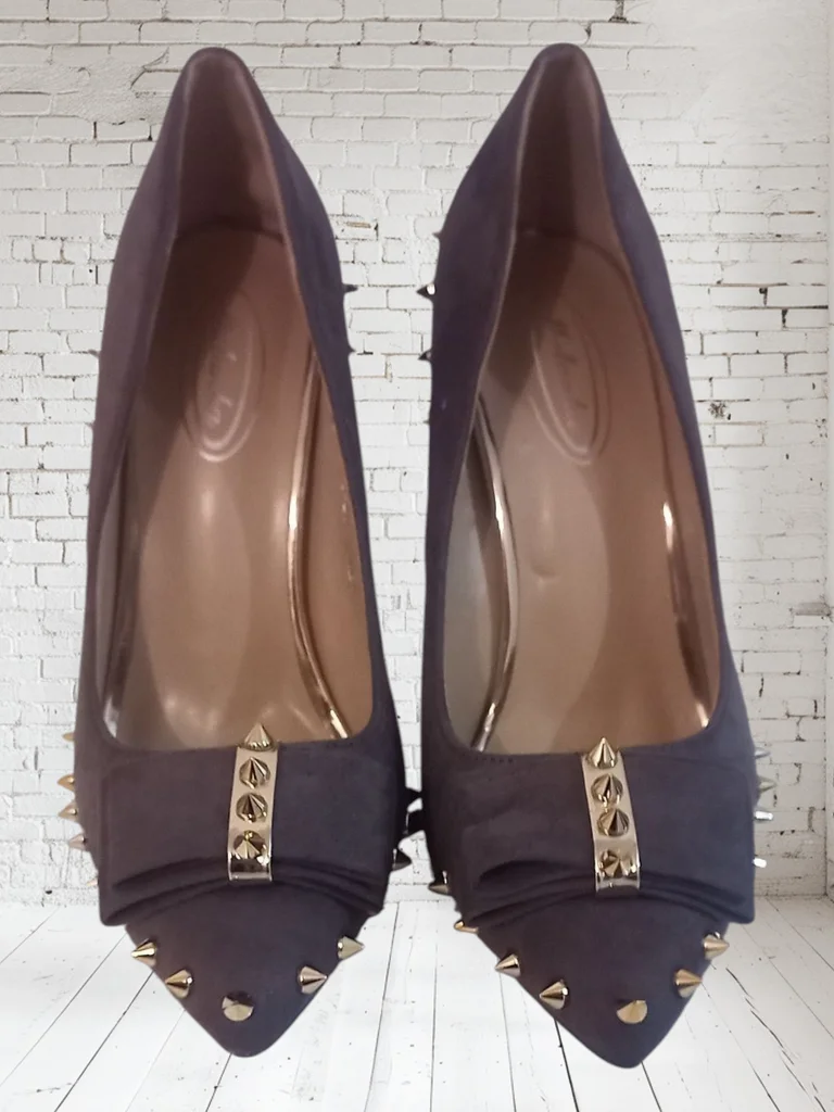 Joli escarpins gris clouté. Hauteur talon : 11,5 cm Comme neuf, non porté. Envoi rapide et soigné n'hésitez pas si vous avez des questions 😊 #escarpins #escarpinscloutés #chaussurecloutée