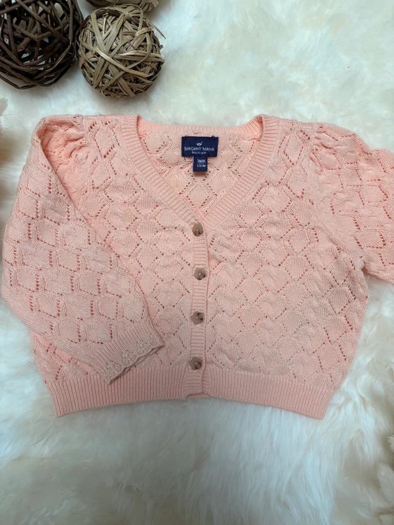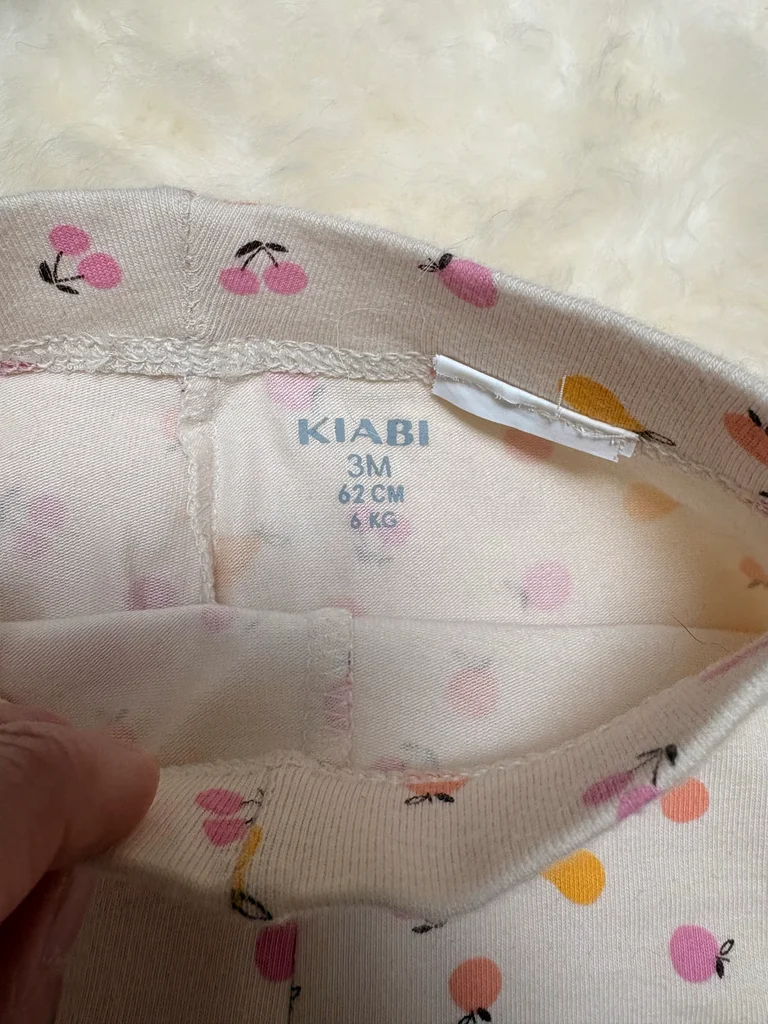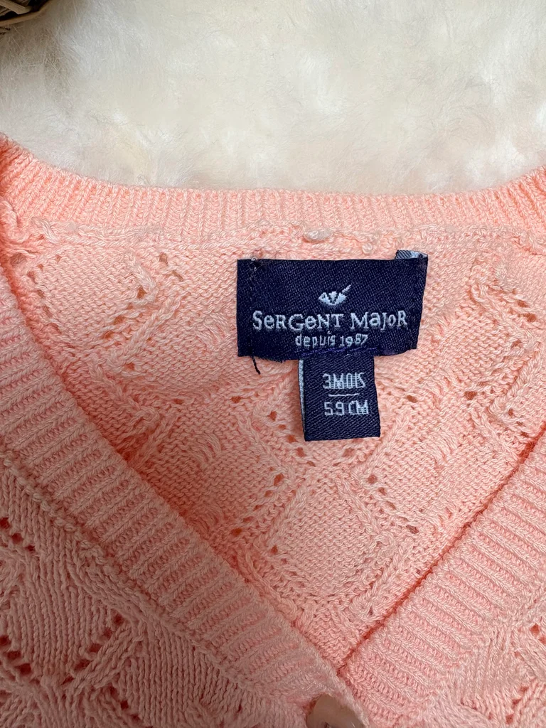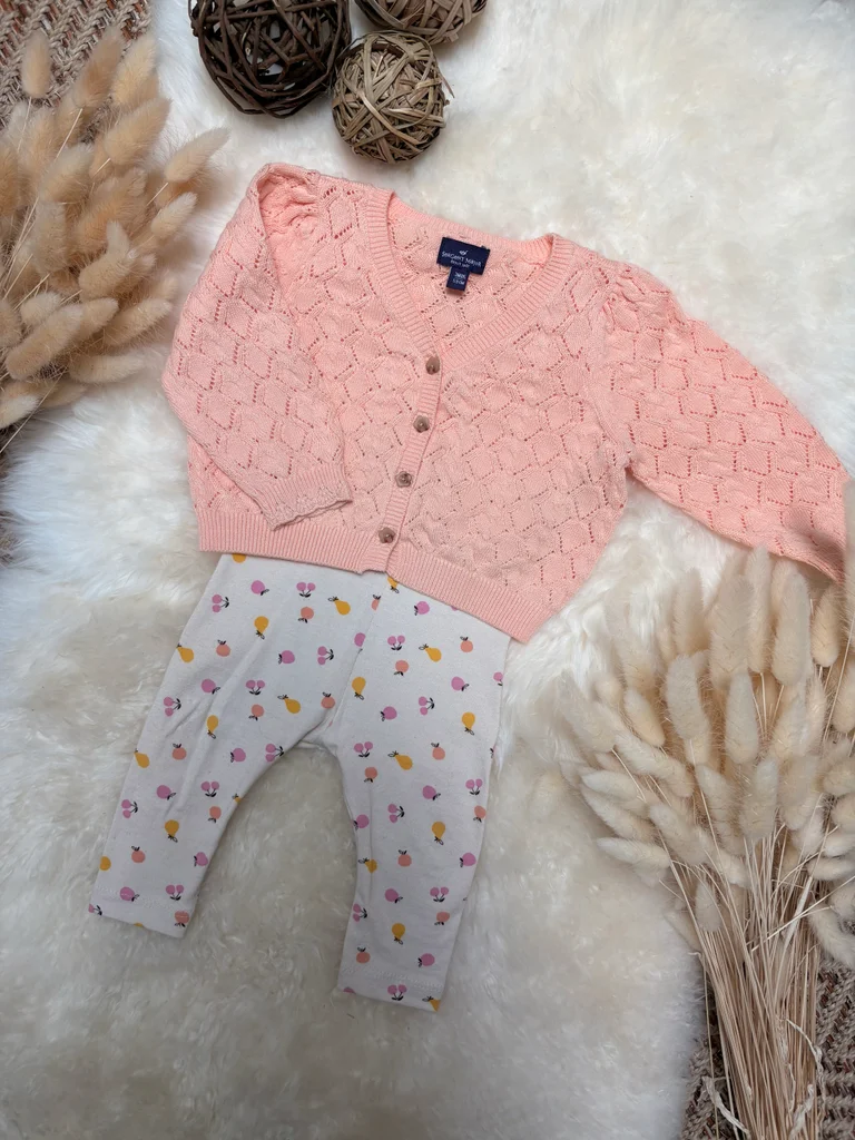 Gilet en maille ajourée couleur saumon, sergent Major Legging motifs fruits, Kiabi 3 mois Très bon état